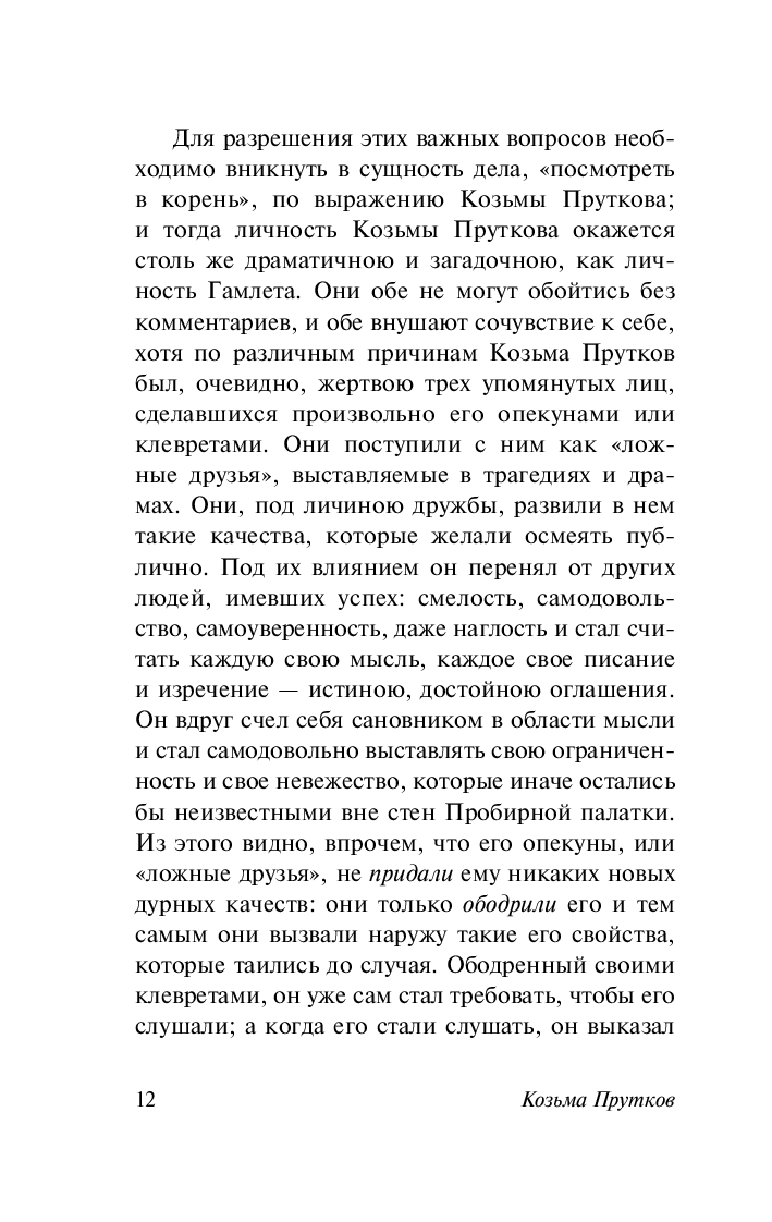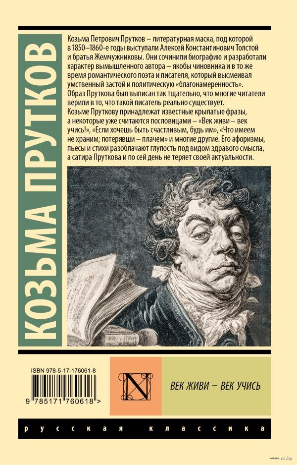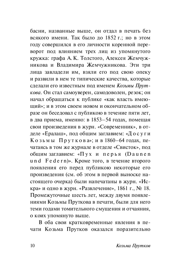 Козьма Петрович Прутков – литературная маска, под которой в 1850—1860-е годы выступали Алексей Константинович Толстой и братья Жемчужниковы. Они сочинили биографию и разработали характер вымышленного автора – якобы чиновника и в то же время романтического поэта и писателя, который высмеивал умственный застой и политическую "благонамеренность". Образ Пруткова был выписан так тщательно, что многие читатели верили в то, что такой писатель реально существует.