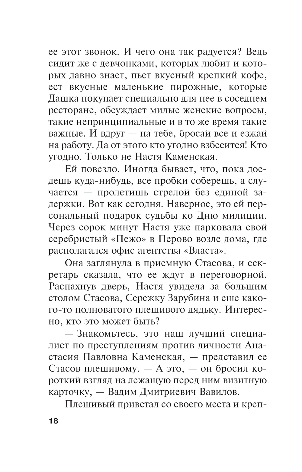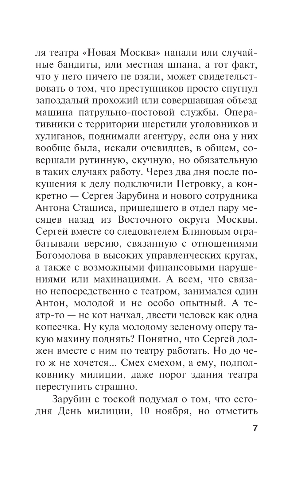 В театре "Новая Москва" совершается загадочное и непонятное для окружающих преступление – покушение на режиссера и художественного руководителя Л.А.Богомолова. Теперь уже частный детектив Анастасия Каменская и молодой оперативник с Петровки Антон Сташис приступают к расследованию, которое приводит их к удивительным и неожиданным результатам. Подозреваемых много, все они лгут, и у каждого для этой лжи есть свои причины: и родительская любовь, и слепая страсть, и гнусный шантаж, и жажда успеха, достающегося слишком дорогой ценой, и страх разоблачения. Казалось бы, все вращается вокруг Театра, но одно маленькое, вроде бы незначительное событие, уходящее корнями в прошлое и ставшее в результате роковым, порождает новое зло. И сегодня пришло время восстановить справедливость...