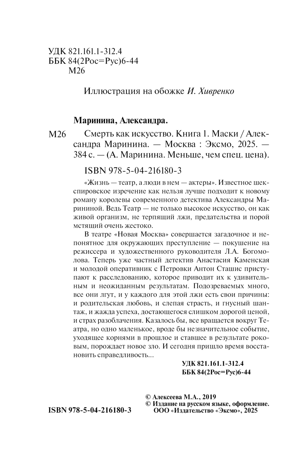 | Серия | А. Маринина. Меньше, чем спец.цена |