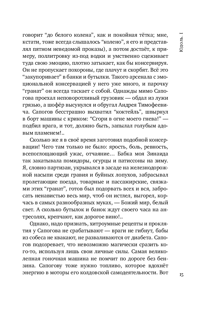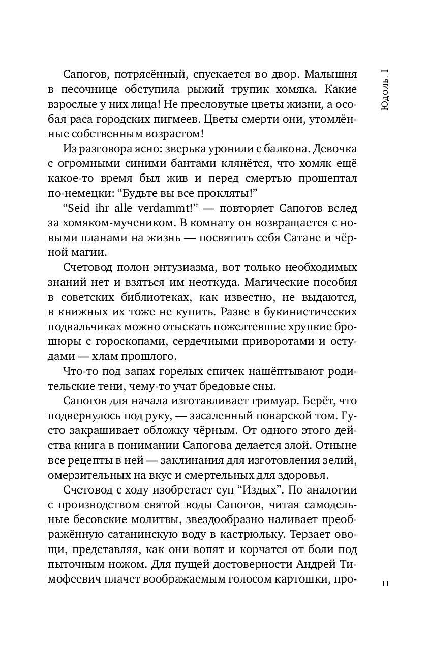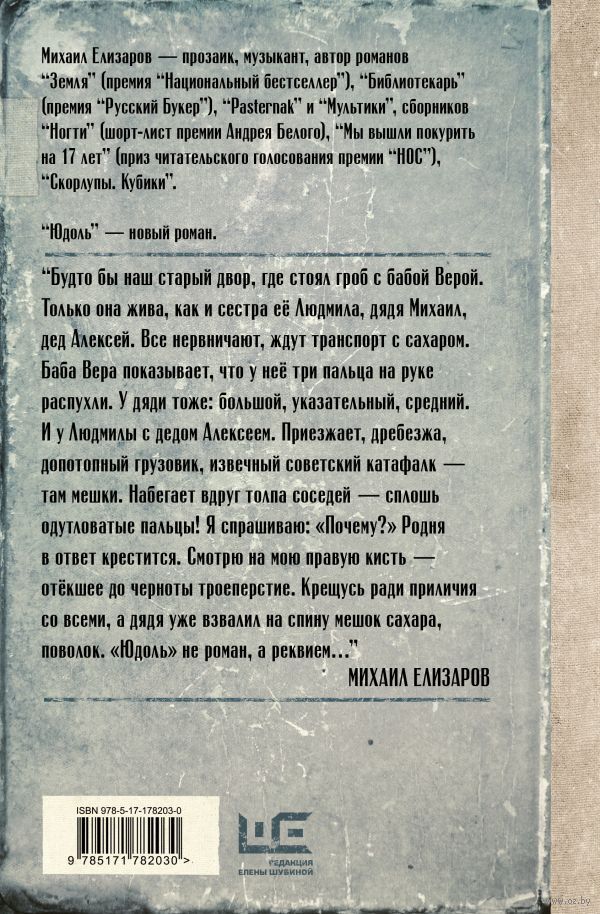 "Будто бы наш старый двор, где стоял гроб с бабой Верой. Только она жива, как и сестра её Людмила, дядя Михаил, дед Алексей. Все нервничают, ждут транспорт с сахаром. Баба Вера показывает, что у неё три пальца на руке распухли. У дяди тоже: большой, указательный, средний. И у Людмилы с дедом Алексеем. Приезжает, дребезжа, допотопный грузовик, извечный советский катафалк – там мешки. Набегает вдруг толпа соседей – сплошь одутловатые пальцы! Я спрашиваю: “Почему?” Родня в ответ крестится. Смотрю на мою правую кисть – отёкшее до черноты троеперстие. Крещусь ради приличия со всеми, а дядя уже взвалил на спину мешок сахара, поволок. “Юдоль” не роман, а реквием…" (Михаил Елизаров).