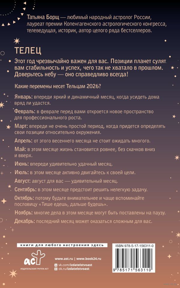Татьяна Борщ – любимый народный астролог России, лауреат премии Копенгагенского астрологического конгресса, телеведущая, историк, автор целого ряда бестселлеров.