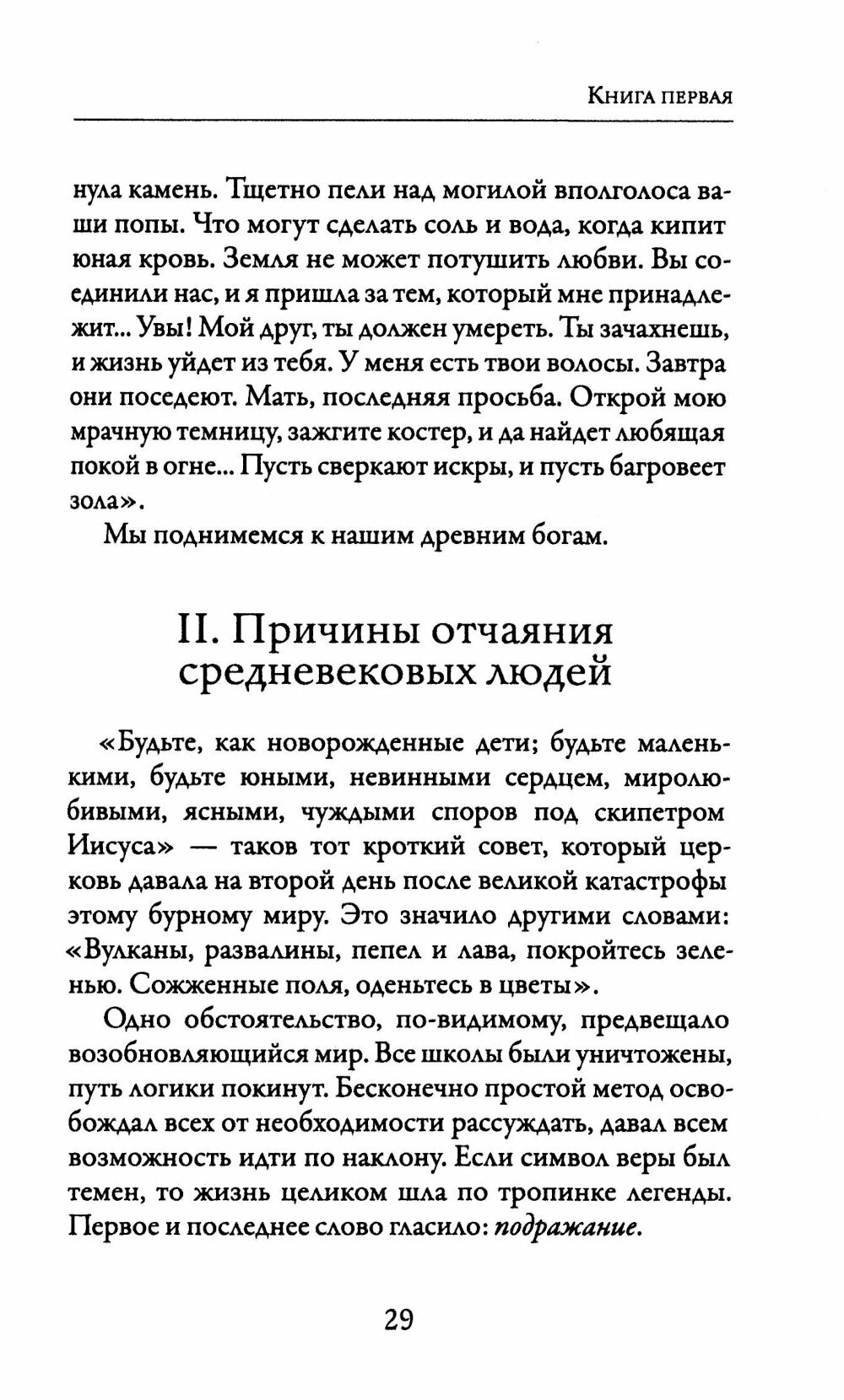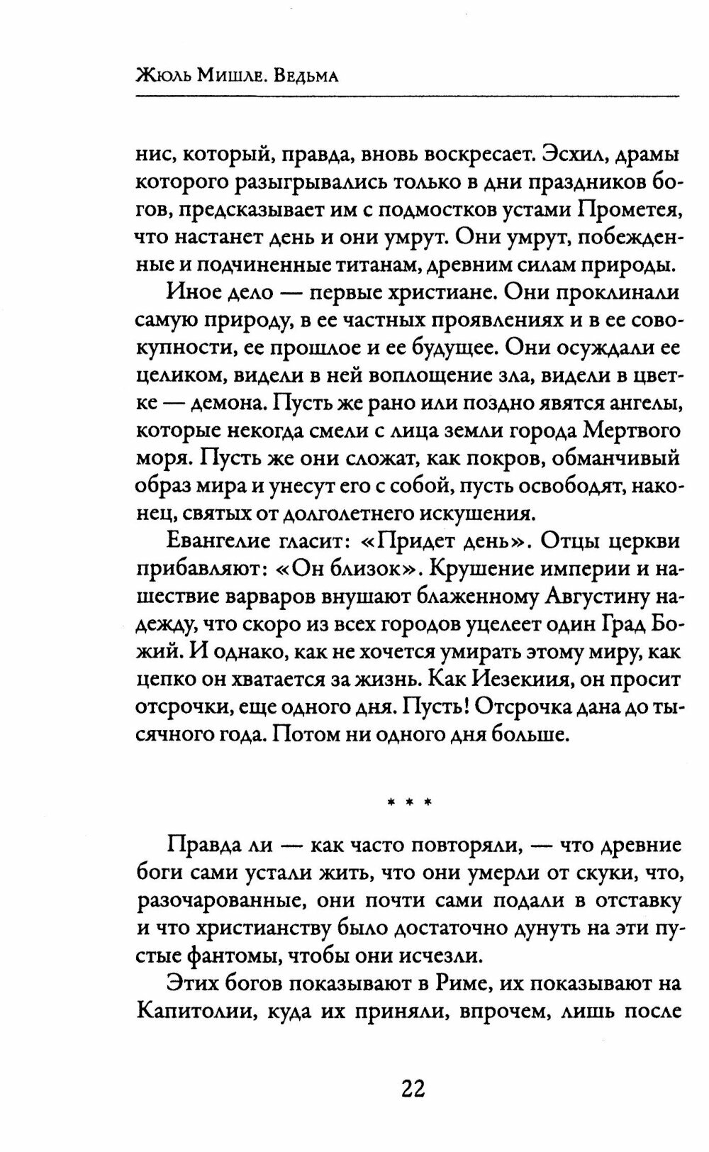 Героиня непрестанно изучает лекарства и яды, заново открывая природу для людей, проникает в будущее, вызывает прошлое. Философ Ж. Батай, критикуя данное произведение, тем не менее признает, что оно «в плане поэтики – шедевр Мишле".