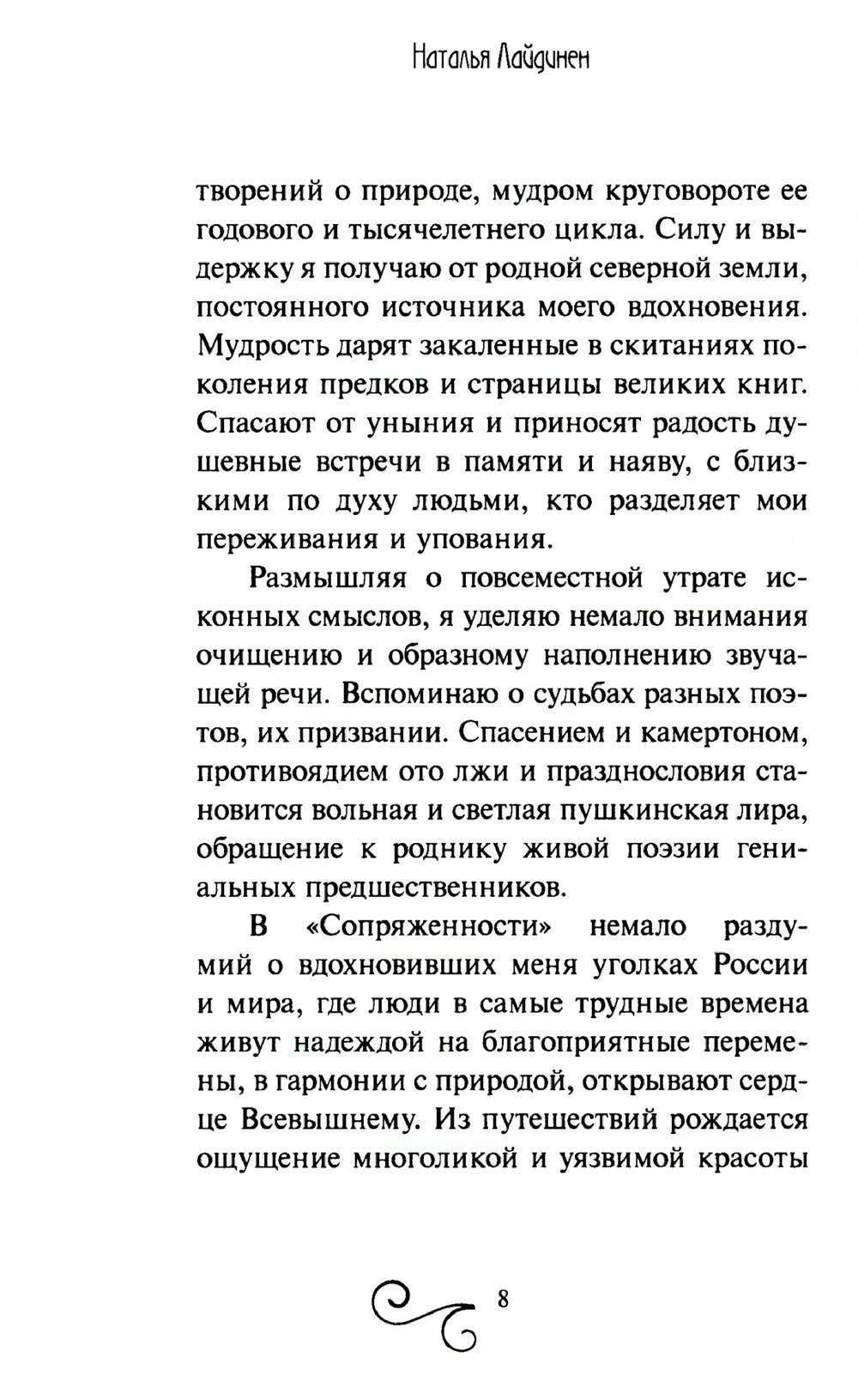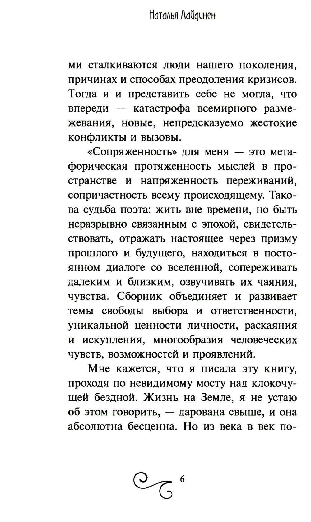 Новая книга российского поэта Натальи Лайдинен "Сопряженность" остро ставит вопрос нравственного выбора, сохранения человеческих ценностей, мира и гуманизма.