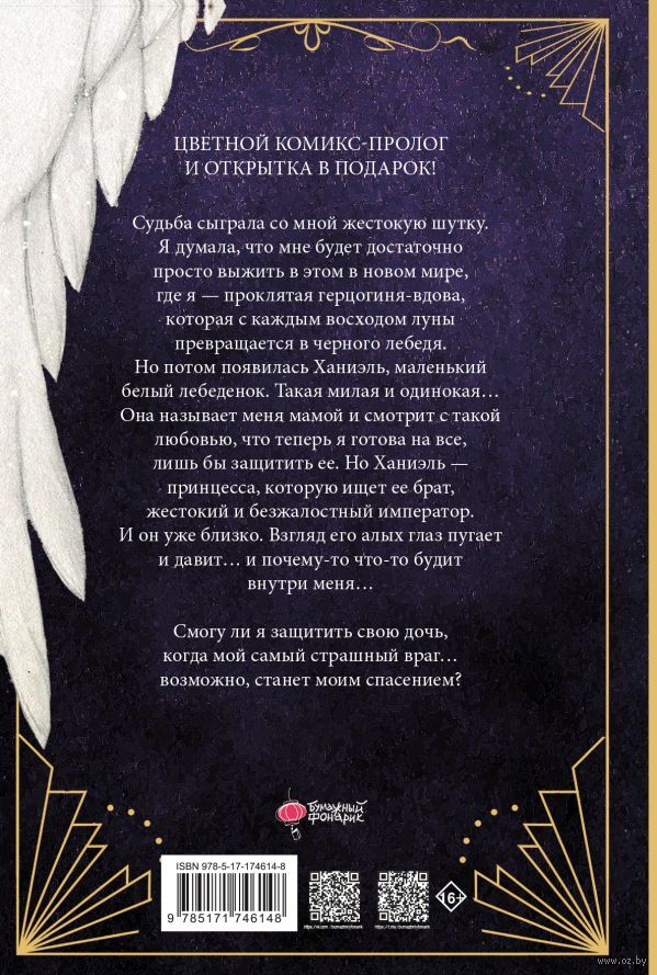 Главная героиня попала в роман, который едва помнит, получив роль второстепенного персонажа – проклятой герцогини по имени Кэтрин. Днем она скорбящая вдова, а ночью лунный свет превращает ее в черного лебедя. Все меняется, когда она встречает очаровательного белого лебеденка, который на самом деле является заколдованной трехлетней принцессой Ханиэль. Вспомнив сюжет романа, Кэтрин узнает трагическую судьбу девочки, обреченной на страдания от рук жестоких братьев. Теперь ее цель – защитить Ханиэль. Но как противостоять императору-тирану, который вскоре прибудет на Север, чтобы вернуть сестру? И что, если его интерес к Кэтрин выходит за рамки простого любопытства?