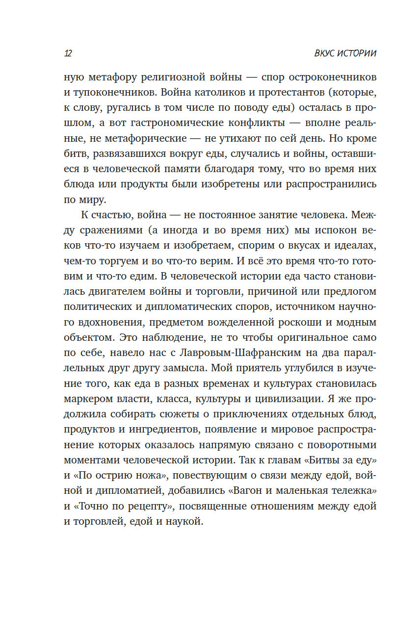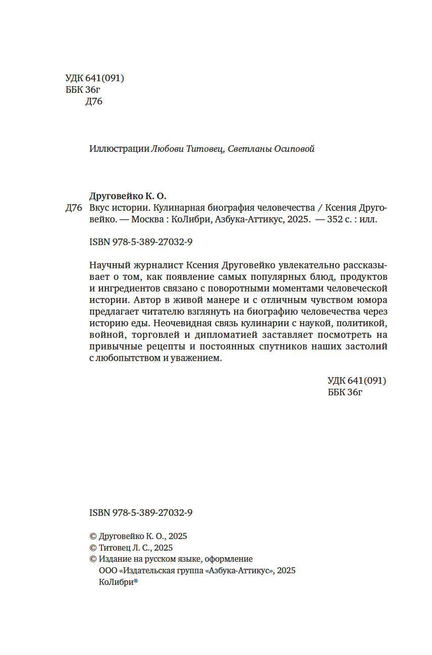Научный журналист Ксения Друговейко увлекательно рассказывает о том, как появление самых популярных блюд, продуктов и ингредиентов связано с поворотными моментами человеческой истории. Автор в живой манере и с отличным чувством юмора предлагает читателю взглянуть на биографию человечества через историю еды. Неочевидная связь кулинарии с наукой, политикой, войной, торговлей и дипломатией заставляет посмотреть на привычные рецепты и постоянных спутников наших застолий с любопытством и уважением.