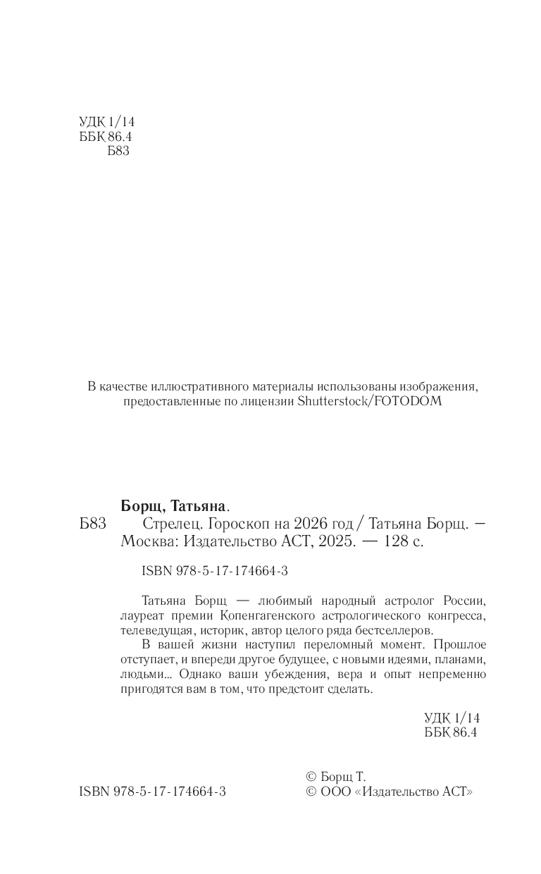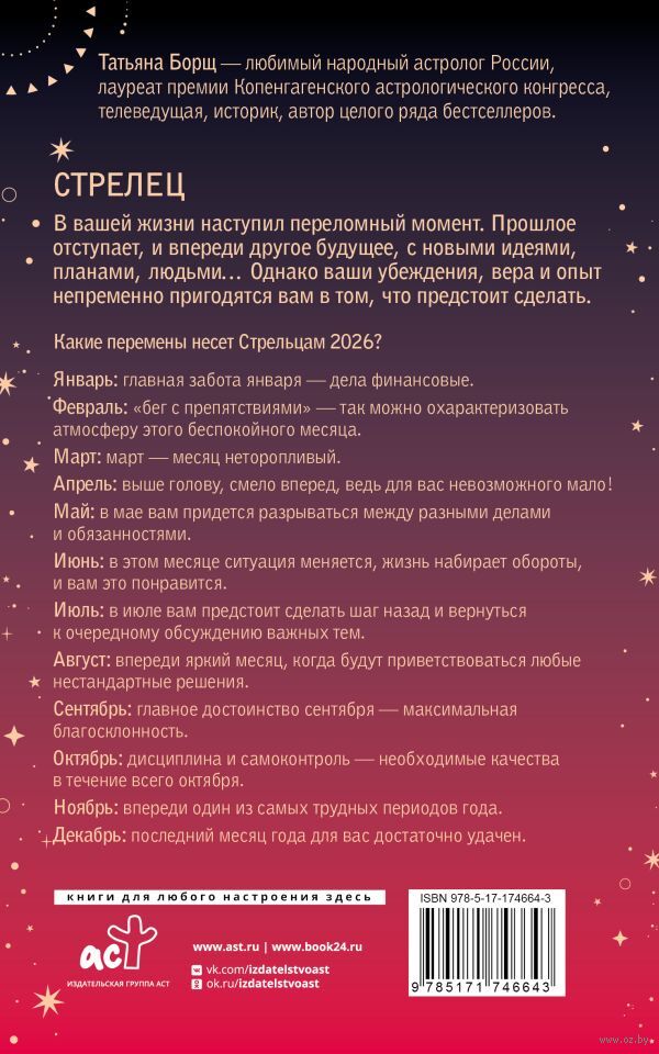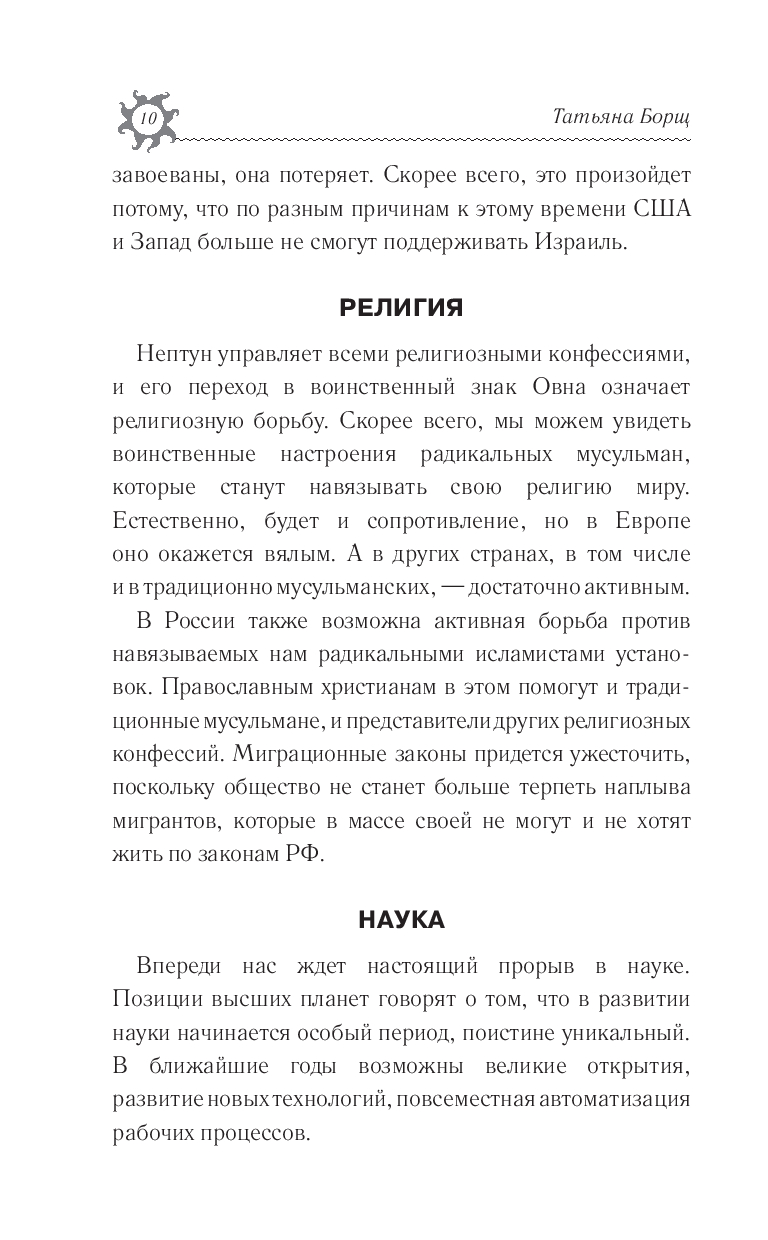 Татьяна Борщ – любимый народный астролог России, лауреат премии Копенгагенского астрологического конгресса, телеведущая, историк, автор целого ряда бестселлеров.
