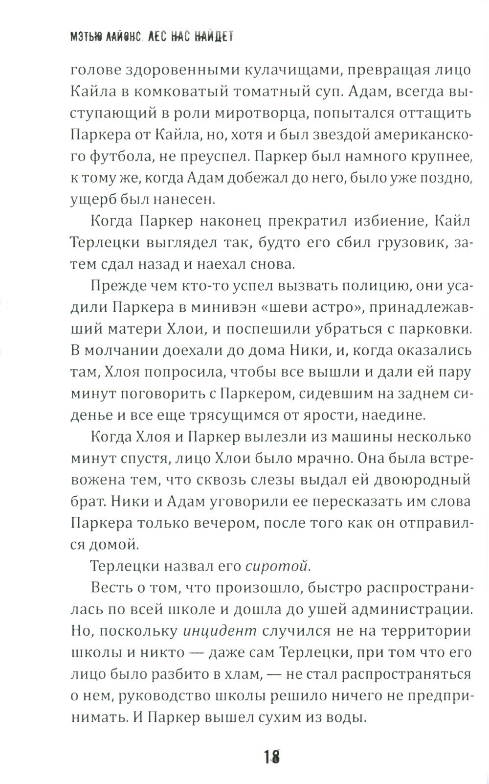 Деревья этого леса хранят память о старых смертях, и одна смерть притягивает другие: призраки убийц и их жертв являются к молодым людям, пытаясь подтолкнуть к новым преступлениям.