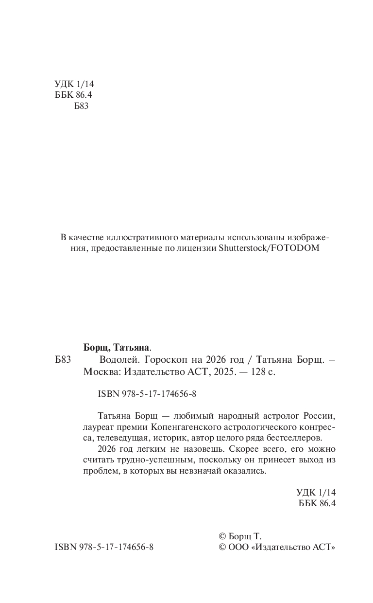 Татьяна Борщ – любимый народный астролог России, лауреат премии Копенгагенского астрологического конгресса, телеведущая, историк, автор целого ряда бестселлеров.