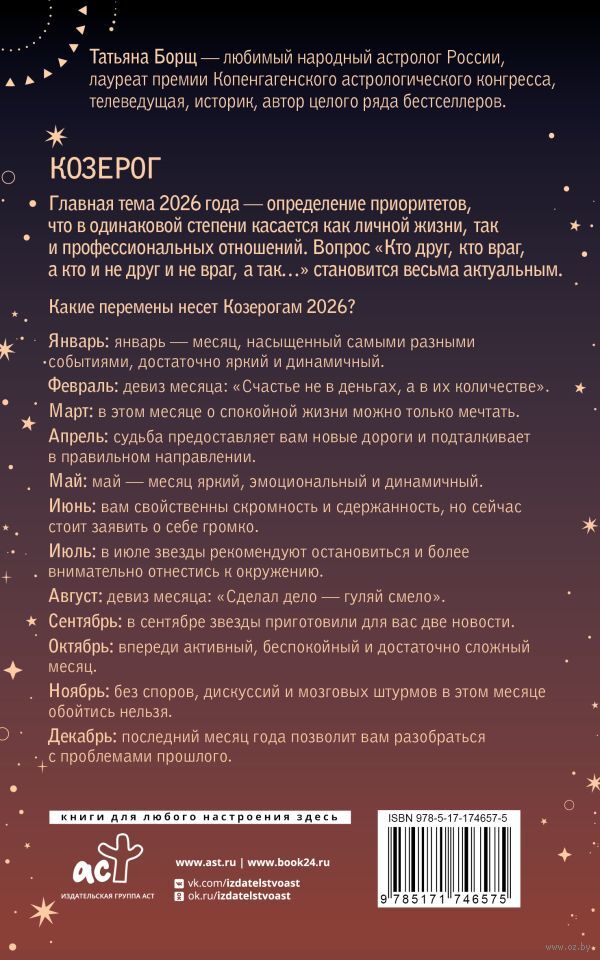 Татьяна Борщ – любимый народный астролог России, лауреат премии Копенгагенского астрологического конгресса, телеведущая, историк, автор целого ряда бестселлеров.
