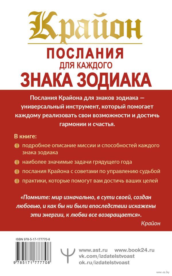 Вы узнаете, как использовать возможности, данные Вселенной вашему знаку зодиака. Послания Крайона станут вашим ориентиром, который приведет вас к гармонии и счастью.