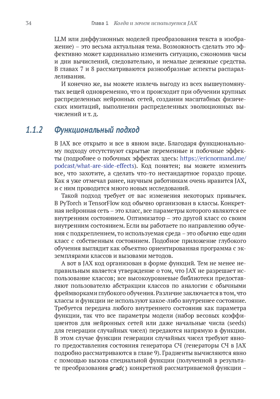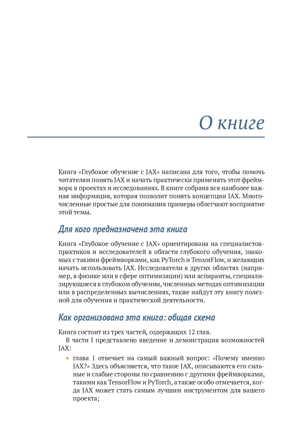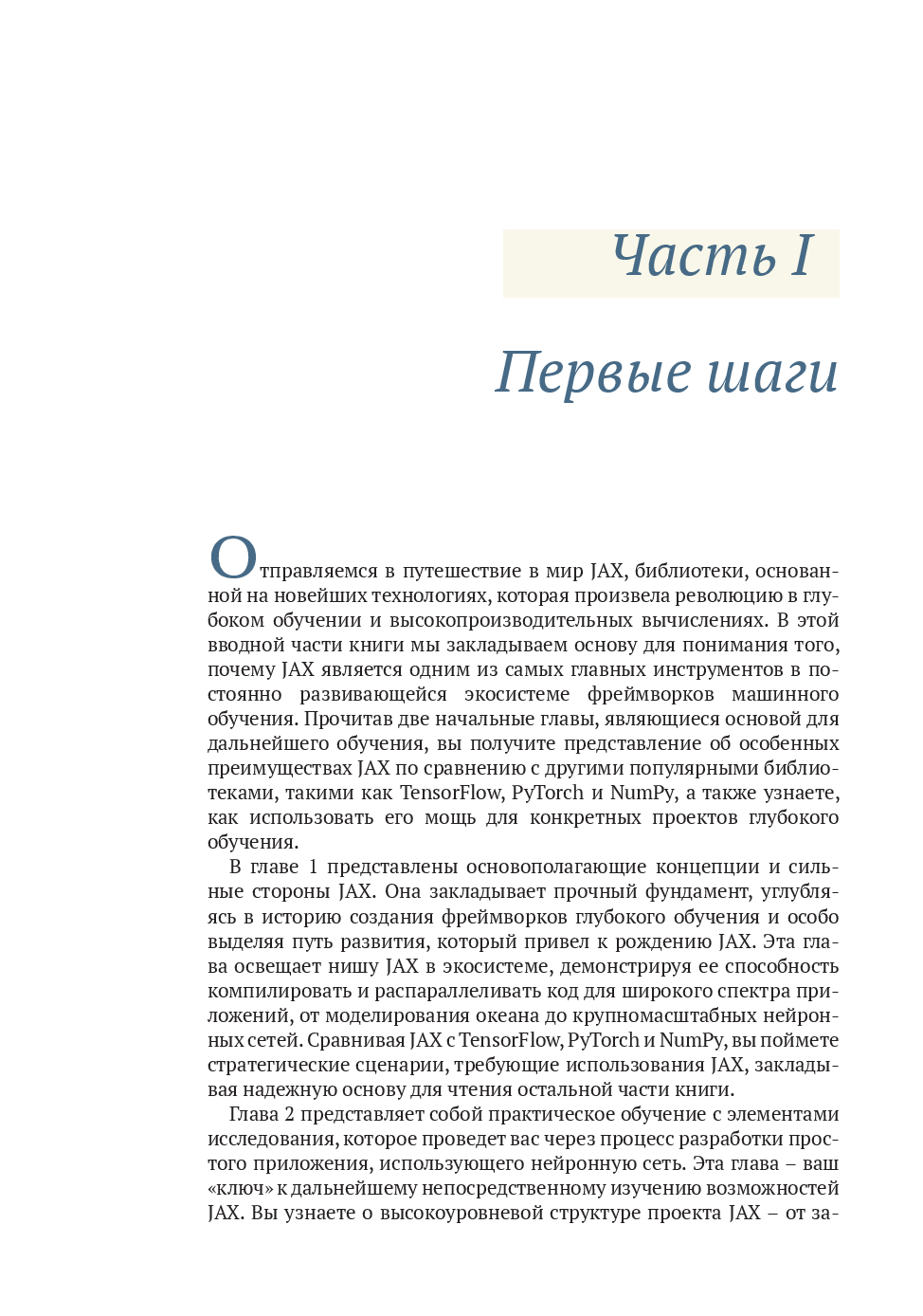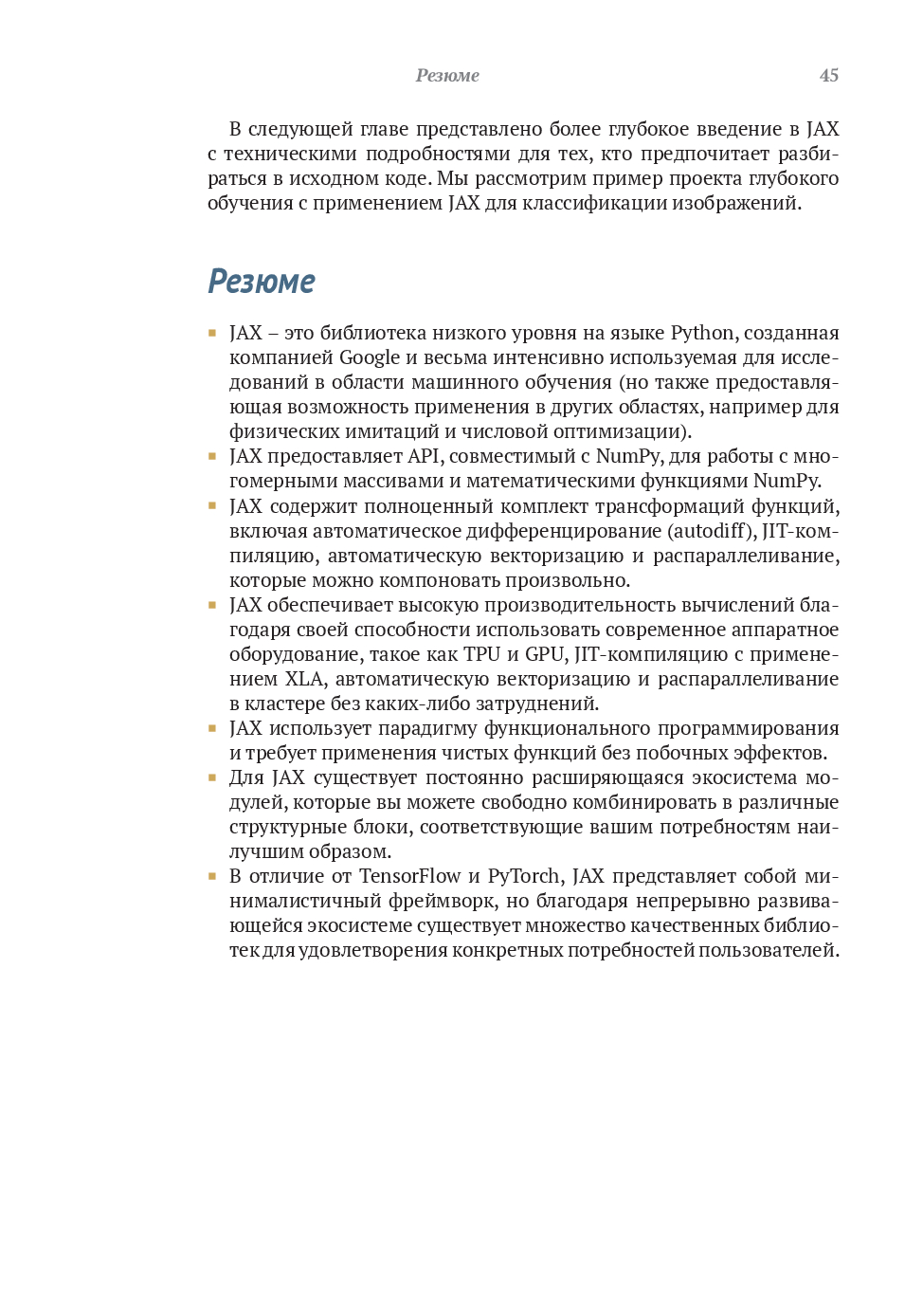 Вы узнаете, как специальные инструменты JAX помогают справиться с проблемами нехватки производительности, характерными для глубокого обучения на больших данных. Примеры реалистичных проектов и листинги исходного кода с подробными комментариями показывают, как парадигма функционального программирования JAX улучшает сочетаемость различных программных компонентов и возможности распараллеливания.