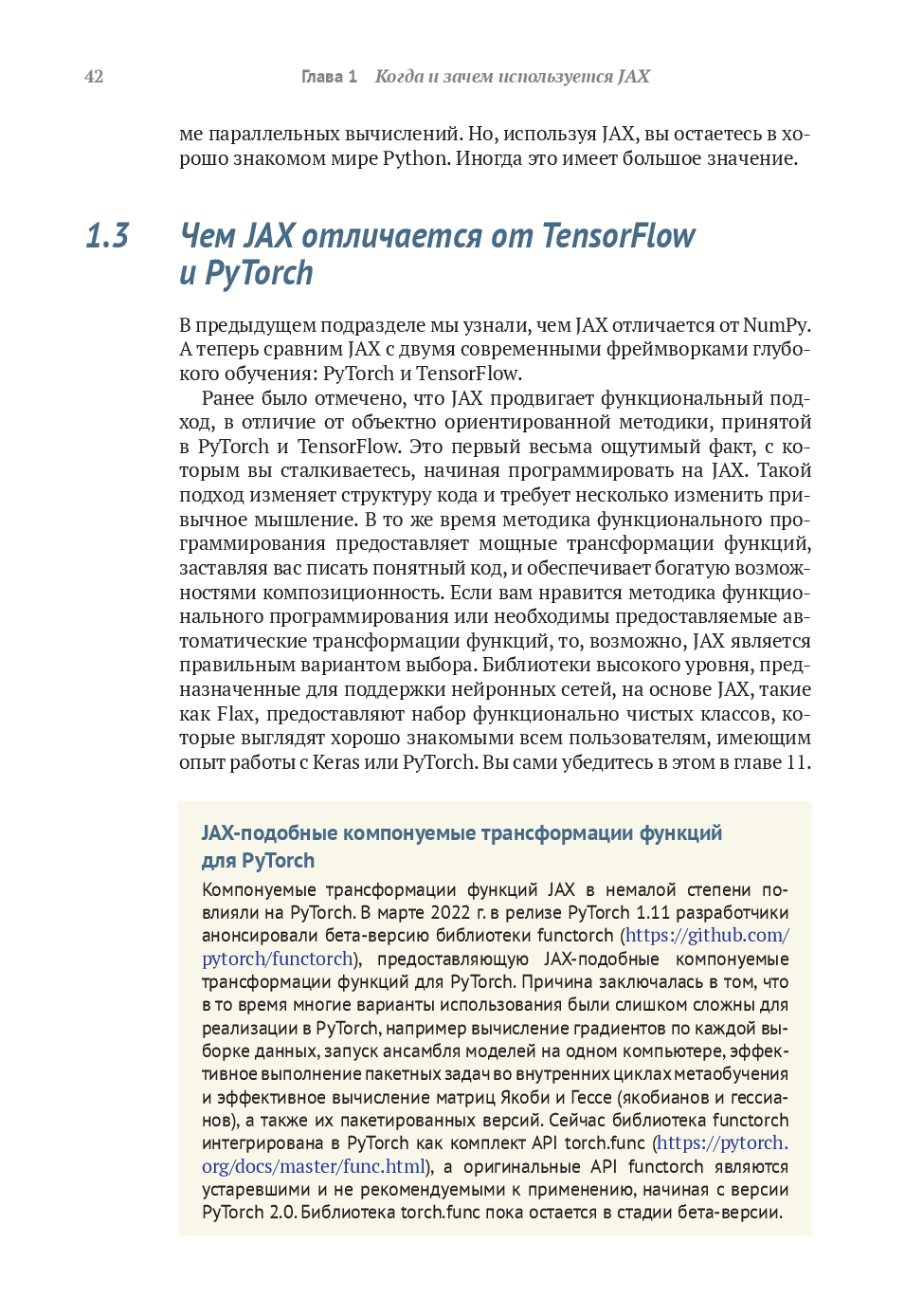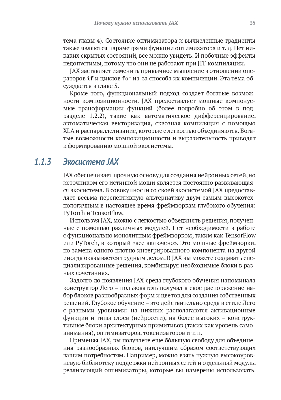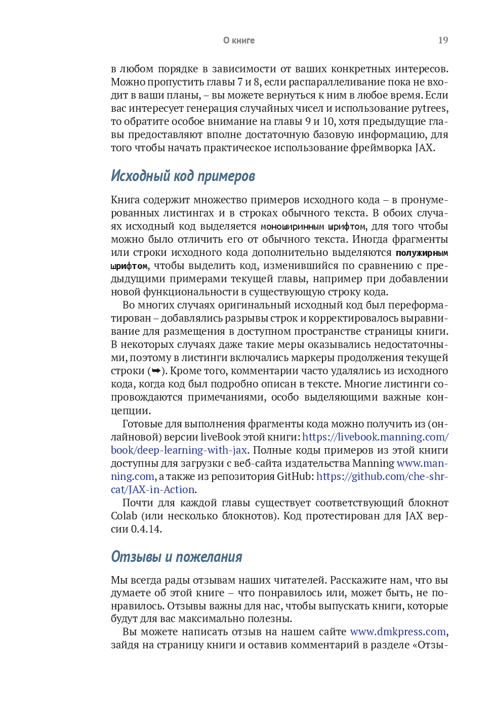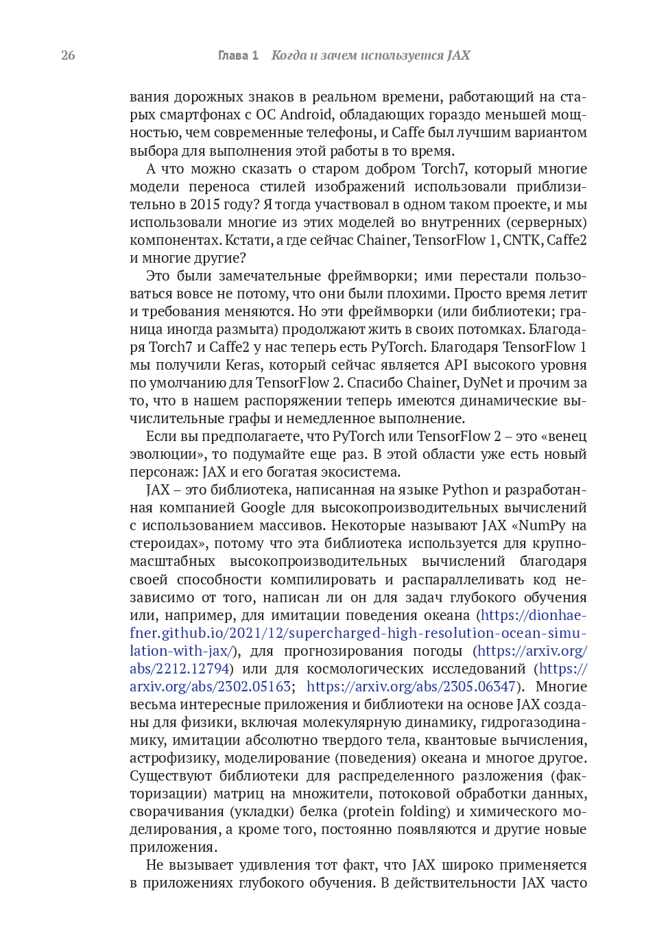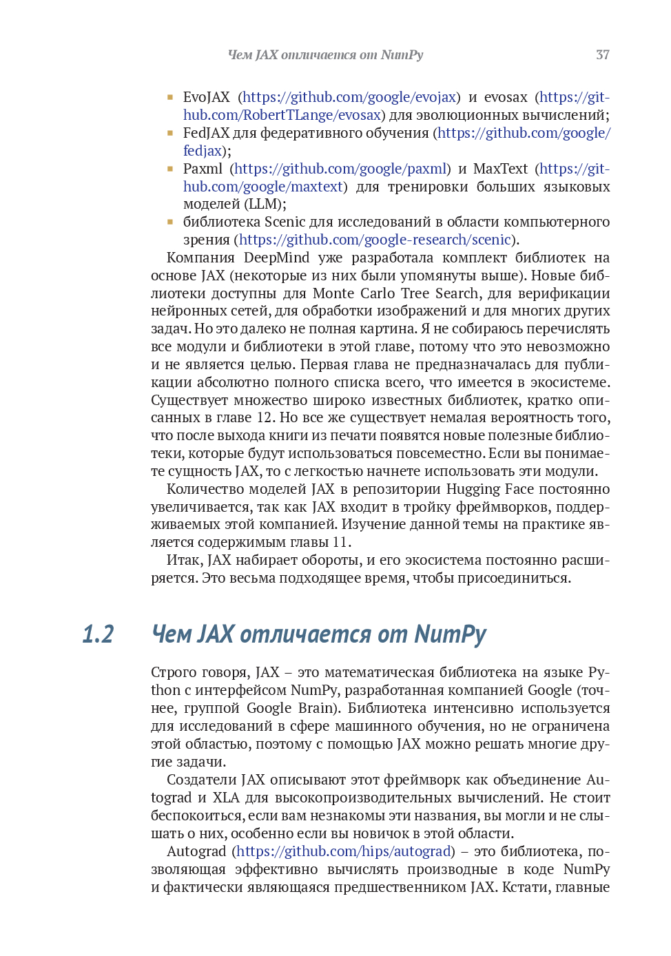Вы узнаете, как специальные инструменты JAX помогают справиться с проблемами нехватки производительности, характерными для глубокого обучения на больших данных. Примеры реалистичных проектов и листинги исходного кода с подробными комментариями показывают, как парадигма функционального программирования JAX улучшает сочетаемость различных программных компонентов и возможности распараллеливания.