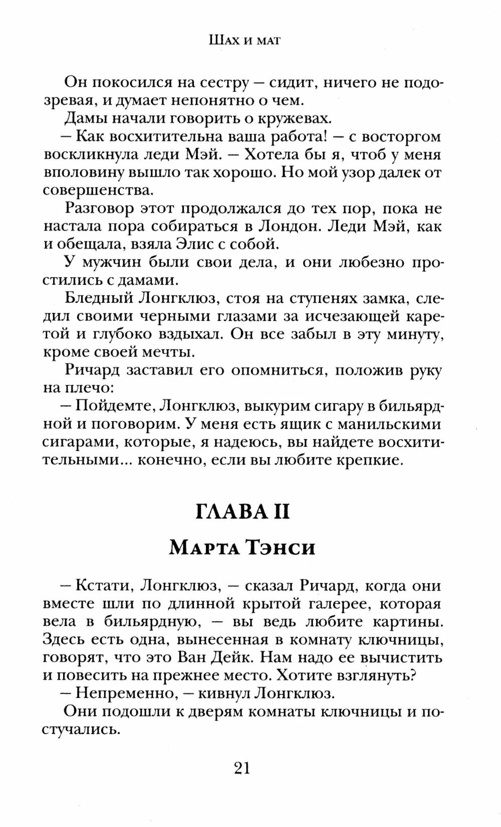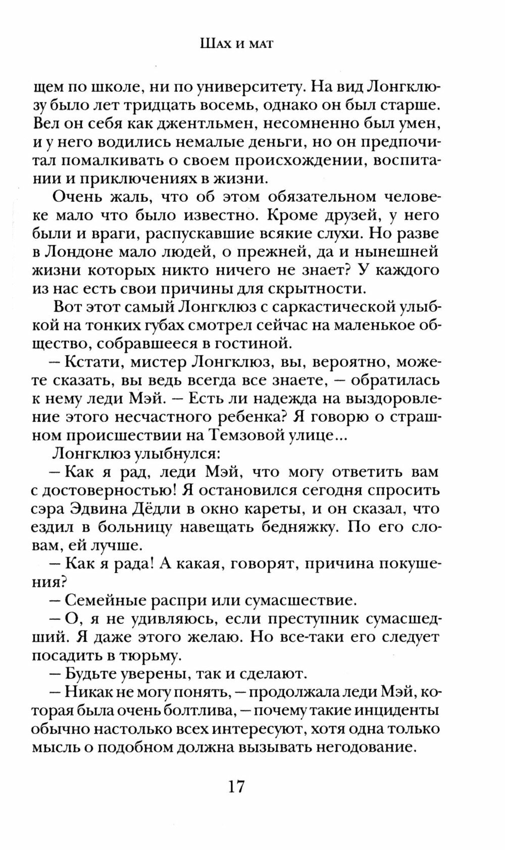 В очередной том собрания произведений ирландского писателя Джозефа Шеридана Ле Фаню включены блестящий и незаслуженно забытый готический детектив "Шах и мат" (1970) и поздние произведения автора, относящиеся к 1870-м годам: роман "Баронет и привидение" и рассказы "Белый кот из Драмганниола", "Мадам Краул и призрак", "Мертвый причетник", "Дикон-дьявол".