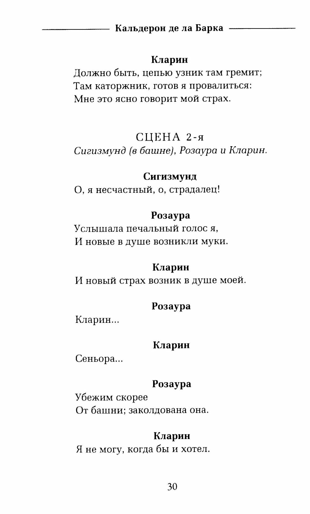 Самая известная и значительная пьеса выдающегося поэта и драматурга Золотого века Испании Кальдерона была впервые опубликована в 1635 году. В ней рассказывается о конфликте между судьбой и долгом, человеком и природой, властью и личностью.