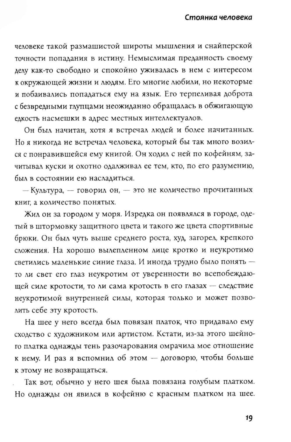 Повести "Стоянка человека" и "Пшада", рассказы "Золото Вильгельма" и "День писателя" повествуют о драме советского человека, пережившего революцию и Великую Отечественную войну, повлиявшие на формирование советского пространства и мышления, способности человека, несмотря на травмы, жить и мыслить самостоятельно, фантазировать и летать.