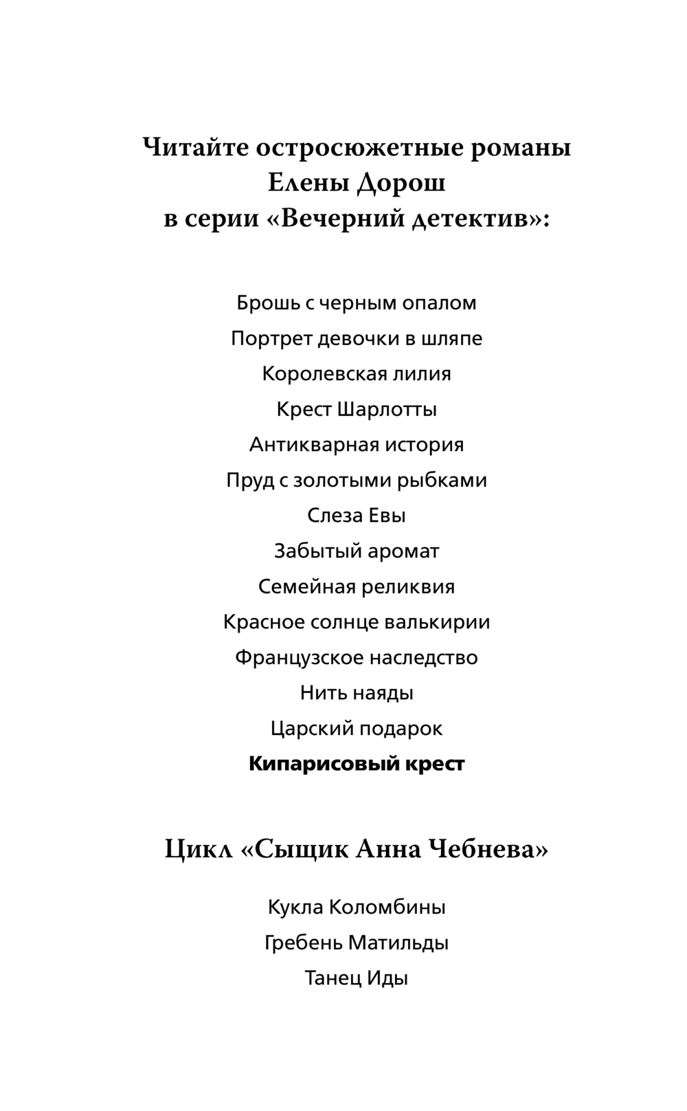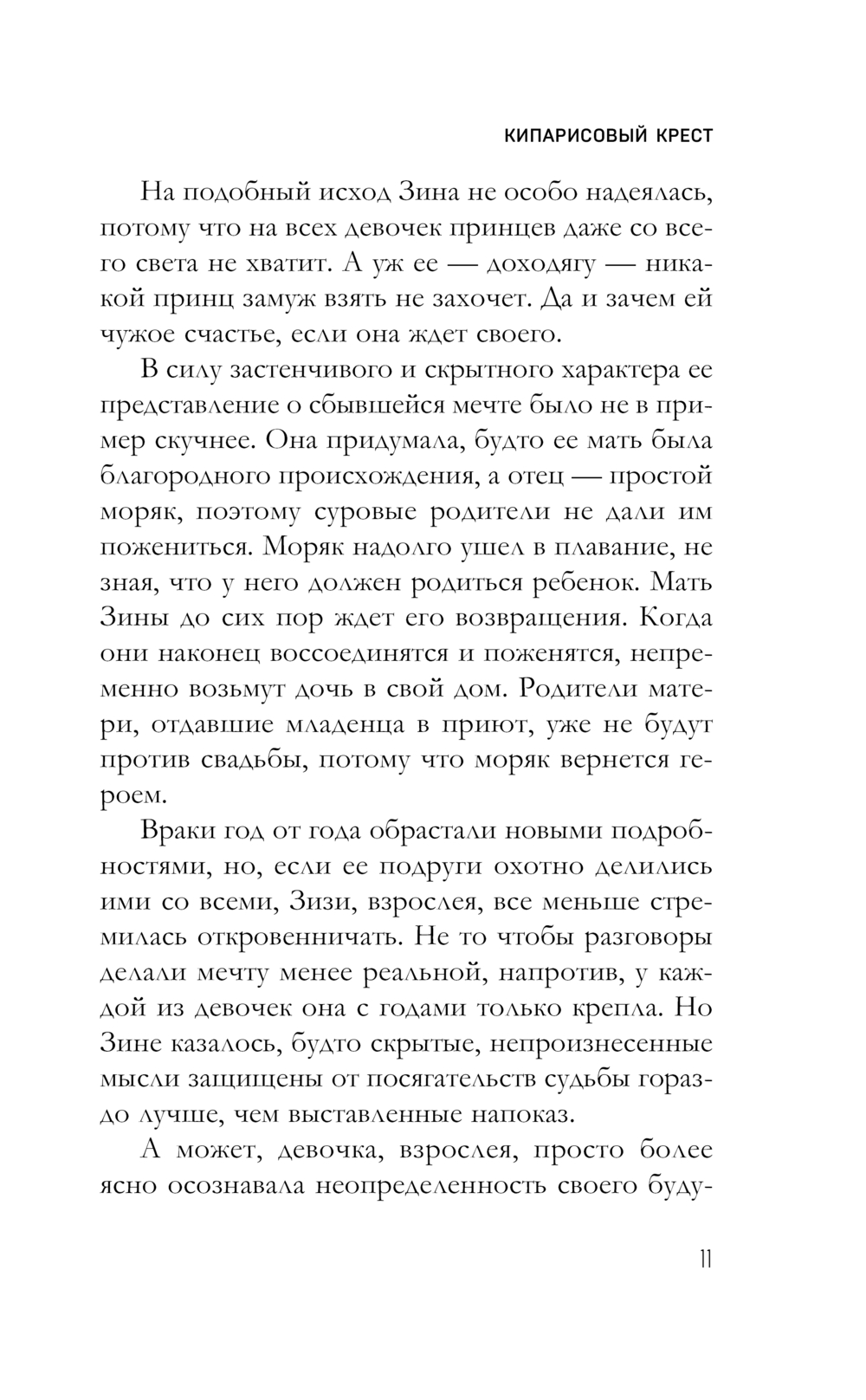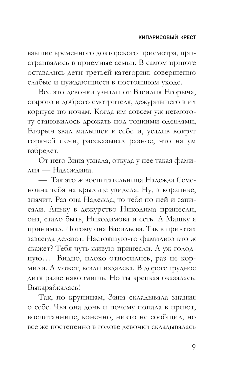 Выросшая в воспитательном доме Зинаида Надеждина волей случая попадает в услужение к одной из фрейлин императрицы. Довольная своей участью девушка и не мечтает о большем. Ее пугает лишь то, что две ее подруги погибают при странных обстоятельствах, и, кажется, ей тоже грозит смертельная опасность. Но кому нужна жизнь бедной сироты? Чтобы выжить, Зинаиде придется разгадать тайну, которую долгие годы хранил кипарисовый крестик – подарок умершей матери…