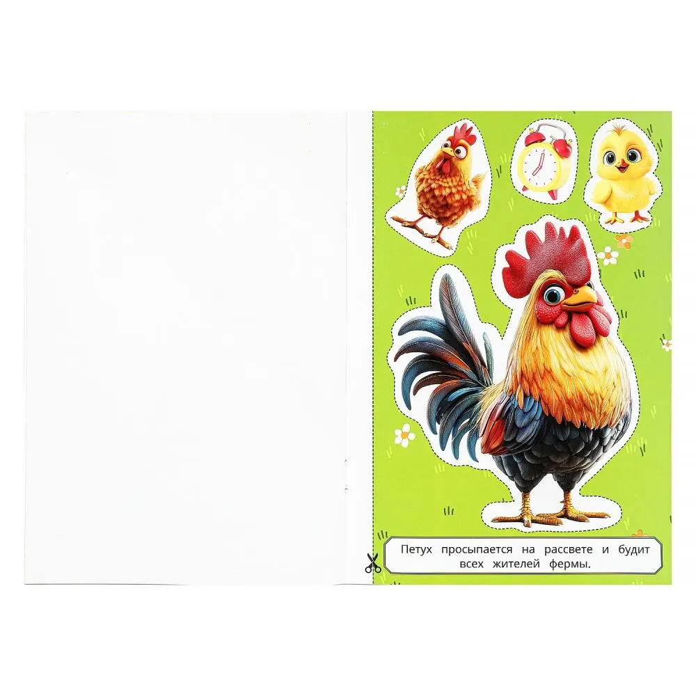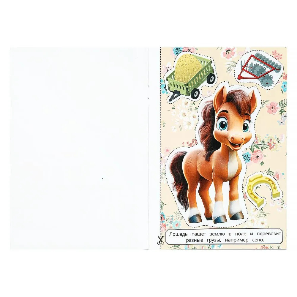 Аппликация – это увлекательная игра и полезное занятие. Ребенок с удовольствием будет заниматься с этой яркой и интересной книжкой-активити, на страницах которой его ждут милые домашние животные. С помощью родителей он научится пользоваться ножницами и вырезать по контурам картинки разной формы. Вырезанные элементы можно приклеить на лист бумаги, и получится красивая аппликация.