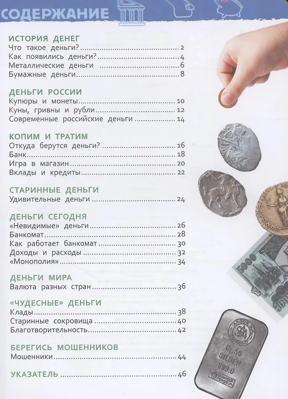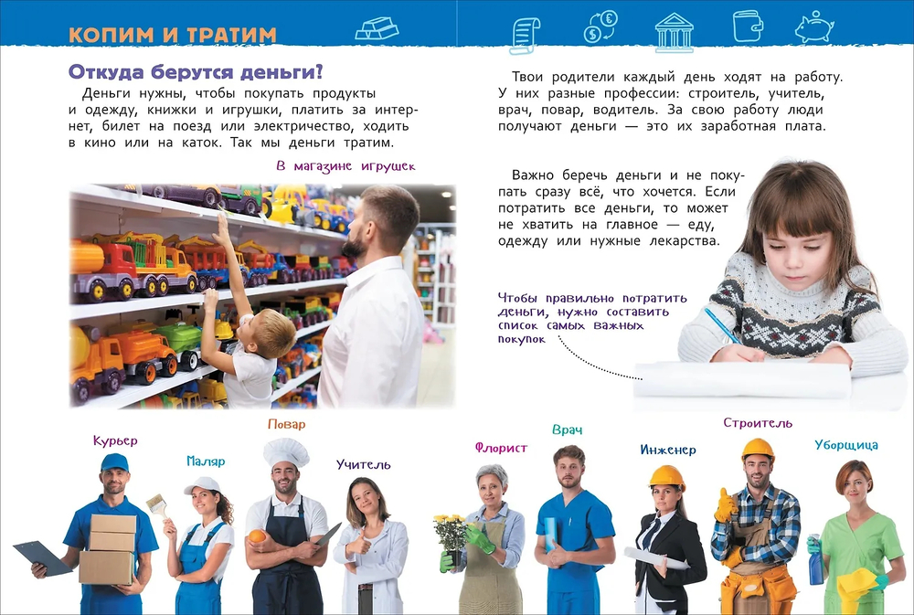 Новая книга из серии "Энциклопедия для детского сада" расскажет юному читателю о деньгах. О том, что было, когда денег еще не существовало, когда и где они появились и почему они так важны в нашем мире. Малыш узнает, откуда берутся деньги, как с ними грамотно обращаться, в том числе в виртуальном мире.
