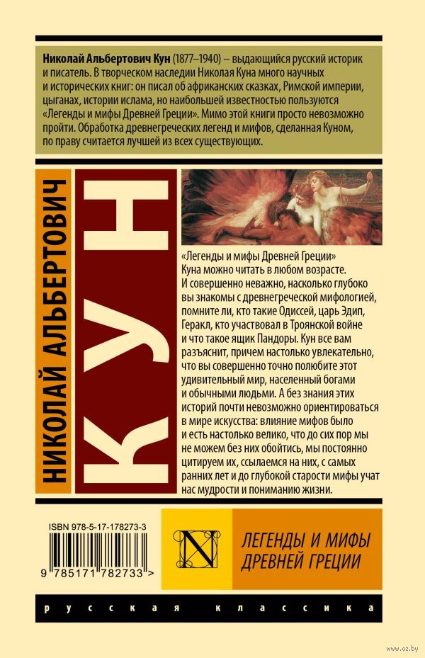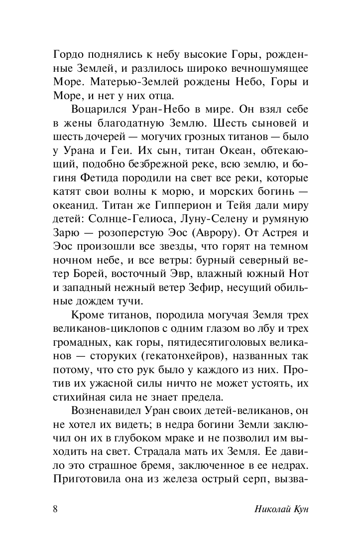"Легенды и мифы Древней Греции" Куна можно читать в любом возрасте. И совершенно неважно, насколько глубоко вы знакомы с древнегреческой мифологией, помните ли кто такой Одиссей, царь Эдип, Геракл, кто участвовал в Троянской войне и что такое ящик Пандоры. Кун все вам разъяснит, причем настолько увлекательно, что вы совершенно точно полюбите этот удивительный мир, населенный богами и обычными людьми. А без знания этих историй почти невозможно ориентироваться в мире искусства: влияние мифов было и есть настолько велико, что до сих пор мы не можем без них обойтись, мы постоянно цитируем их, ссылаемся на них, с самых ранних лет и до глубокой старости мифы учат нас мудрости и пониманию жизни.