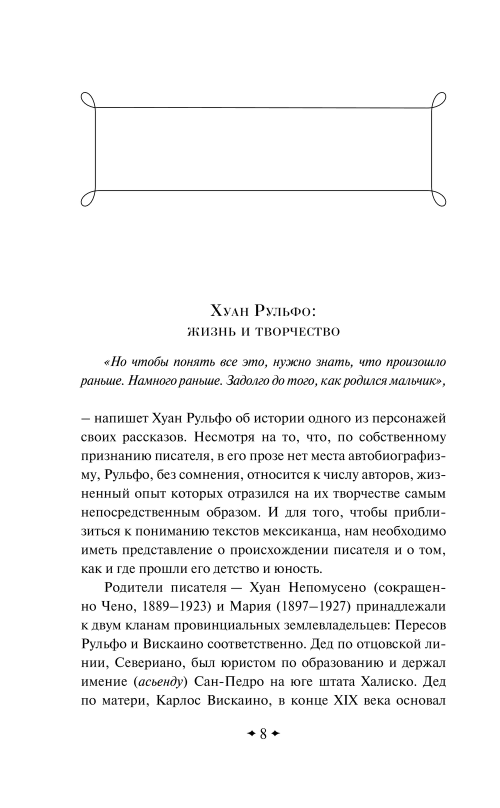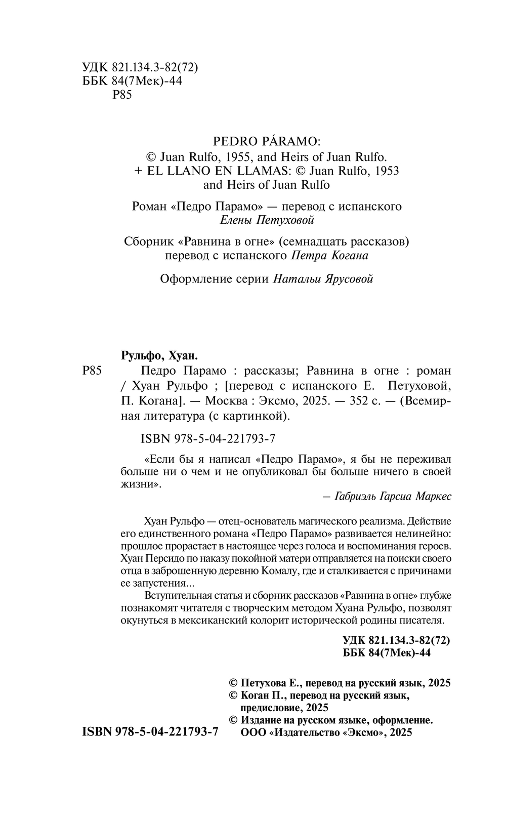 Вступительная статья и сборник рассказов "Равнина в огне" глубже познакомят читателя с творческим методом Хуана Рульфо, позволят окунуться в мексиканский колорит исторической родины писателя.