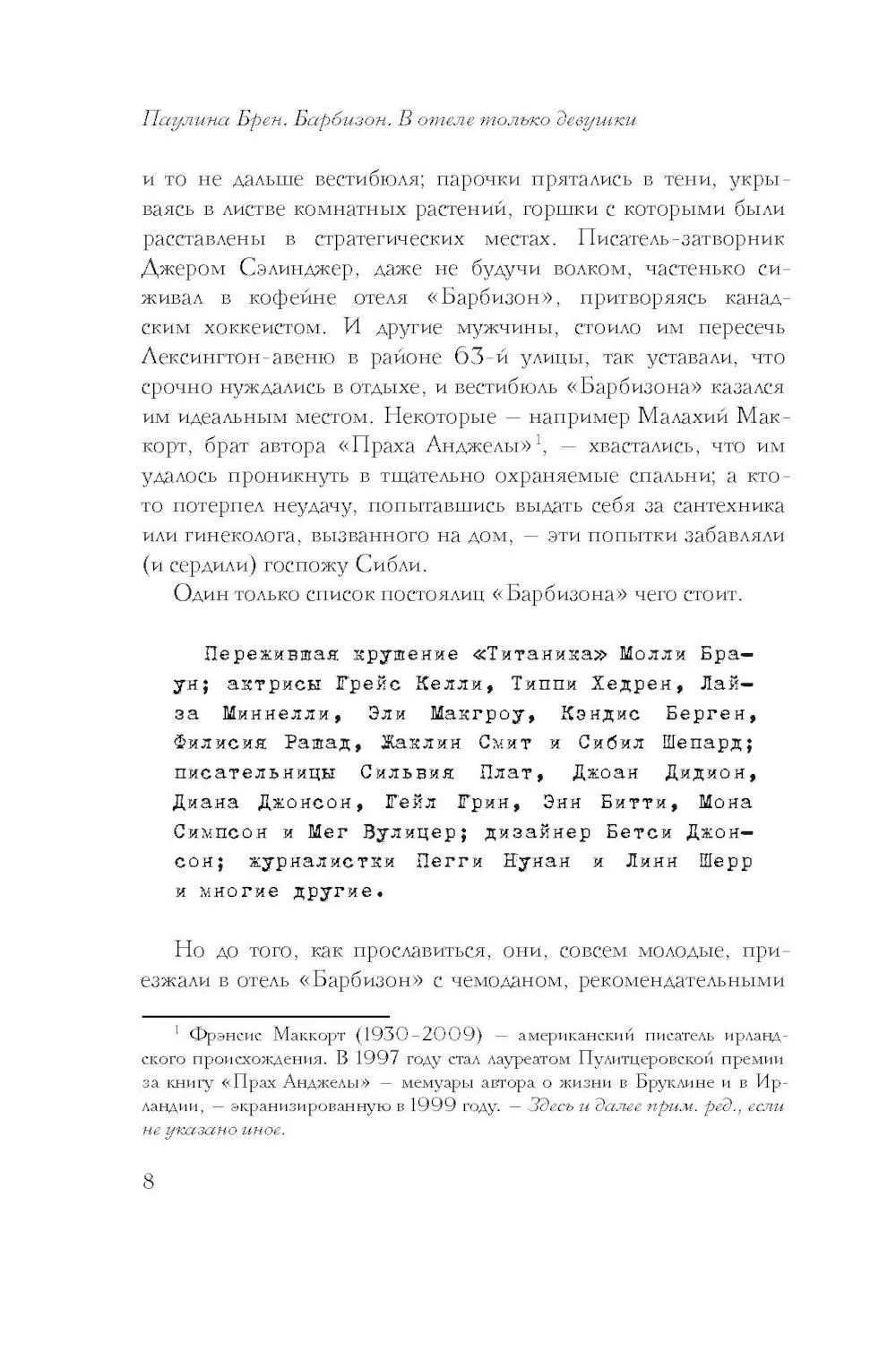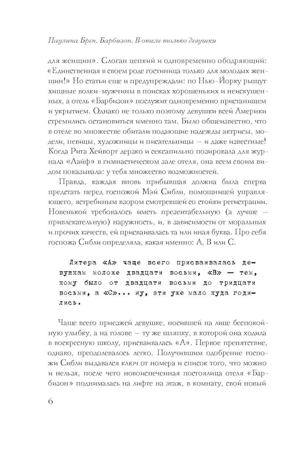 Эта книга – история одного здания – "кукольного дома". Здесь жили: Сильвия Плат, Джоан Дидион, Рита Хейворт, Молли Браун, Грейс Келли, Лайза Миннелли и очень много других чудесных певиц, писательниц, художниц, актрис, редакторов и моделей. Но, до того как прославиться, все они, совсем молодые, приезжали в отель "Барбизон" с чемоданом, рекомендательными письмами и надеждами.