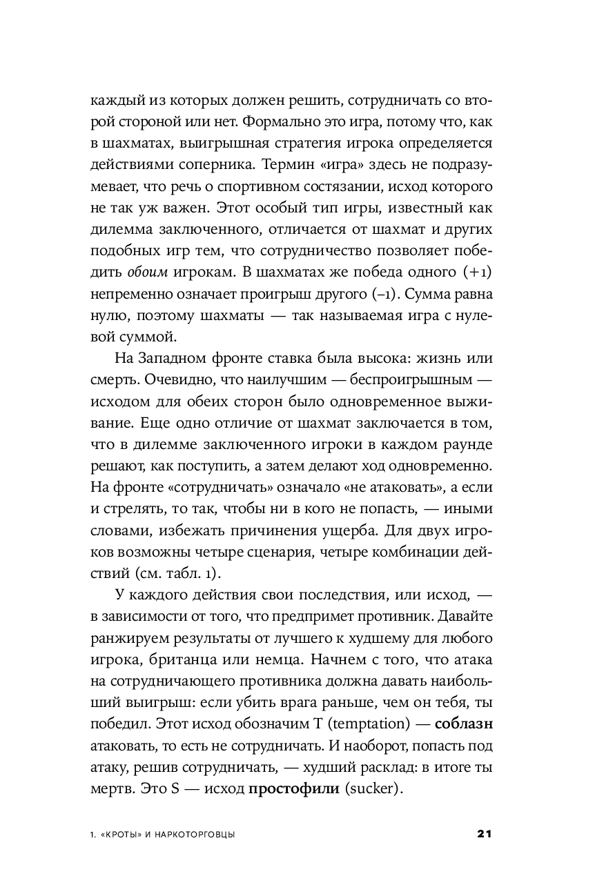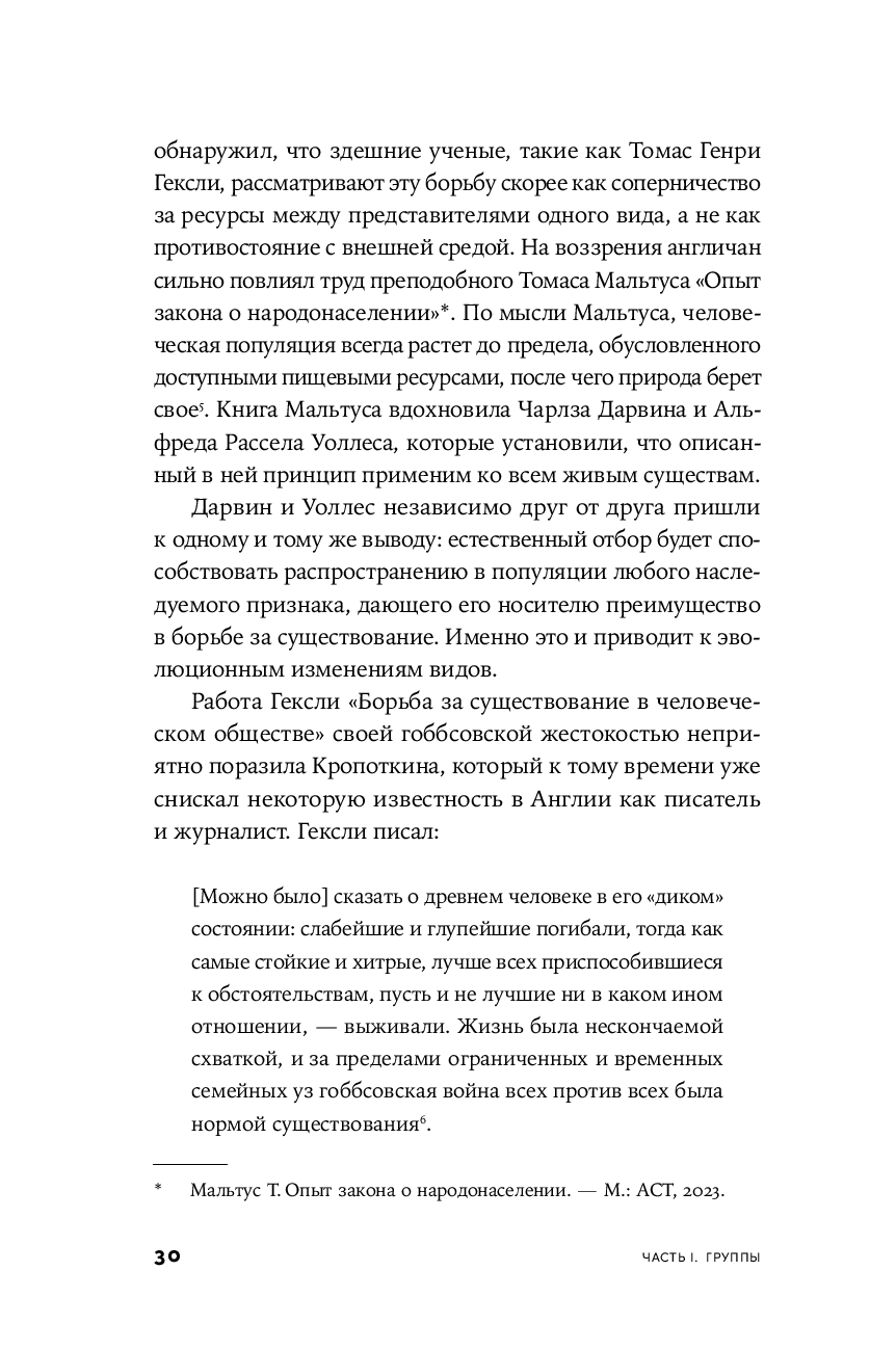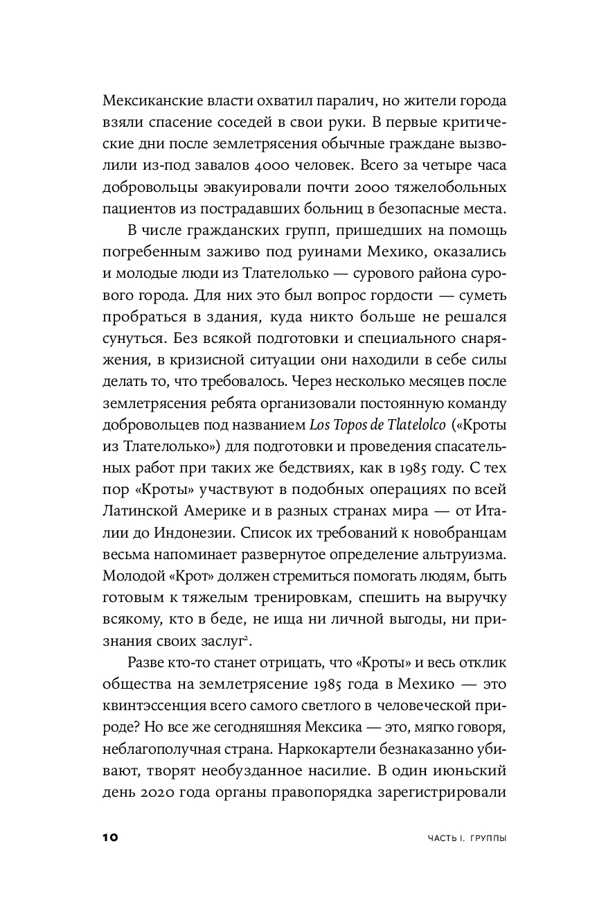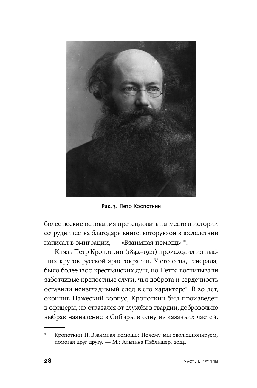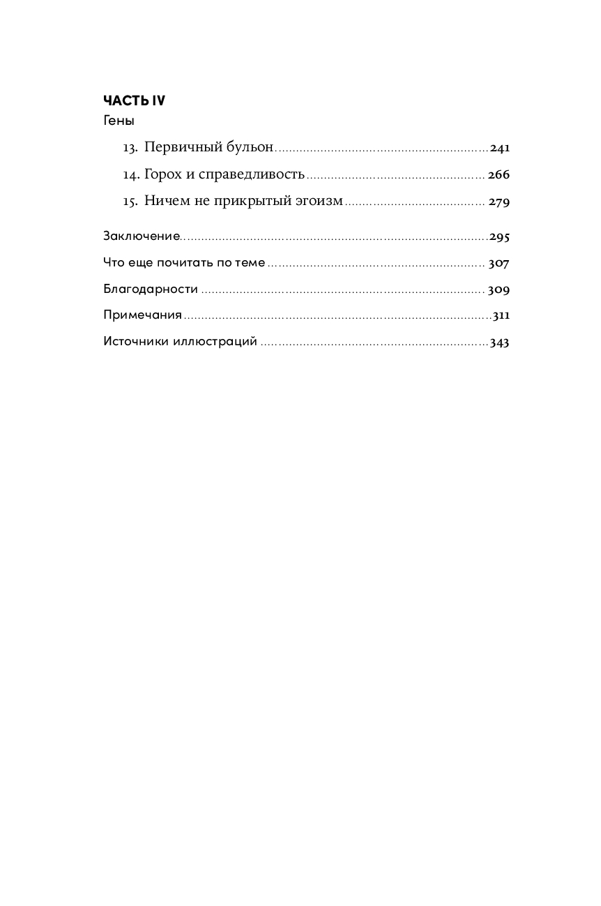 На таких неожиданных примерах, как поведение крыс и ворон, строение земляных червей и лишайников, кипение клеточного бульона и даже взаимодействие среди пиратов и благотворительных организаций, автор показывает, что, так же как гены и клетки, каждое существо стремится к сотрудничеству – впрочем, в собственных интересах. И противоречия тут нет: ведь именно объединение с кем-то другим с целью выгоды и предотвращения опасности дало начало жизни и способствовало процессу эволюции. В склонности людей к взаимопомощи есть глубокий смысл. Во всех нас зашит некий биологический закон, побуждающий нас сотрудничать. А вот бессмысленное насилие, к которому иногда так склонен наш вид, – самое суровое испытание для выживания человека как вида.