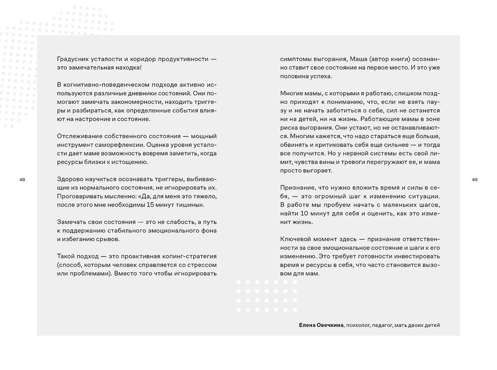 Эта книга – для всех, кто устал и ищет реальные пути восстановления. Здесь собраны жизненные истории и подробные алгоритмы возвращения продуктивного состояния, которые помогут читателю увидеть себя и свои чувства с новой стороны. Книга адресована не только мамам, но и папам, а также всем, кто сталкивается с похожими трудностями на собственном опыте.