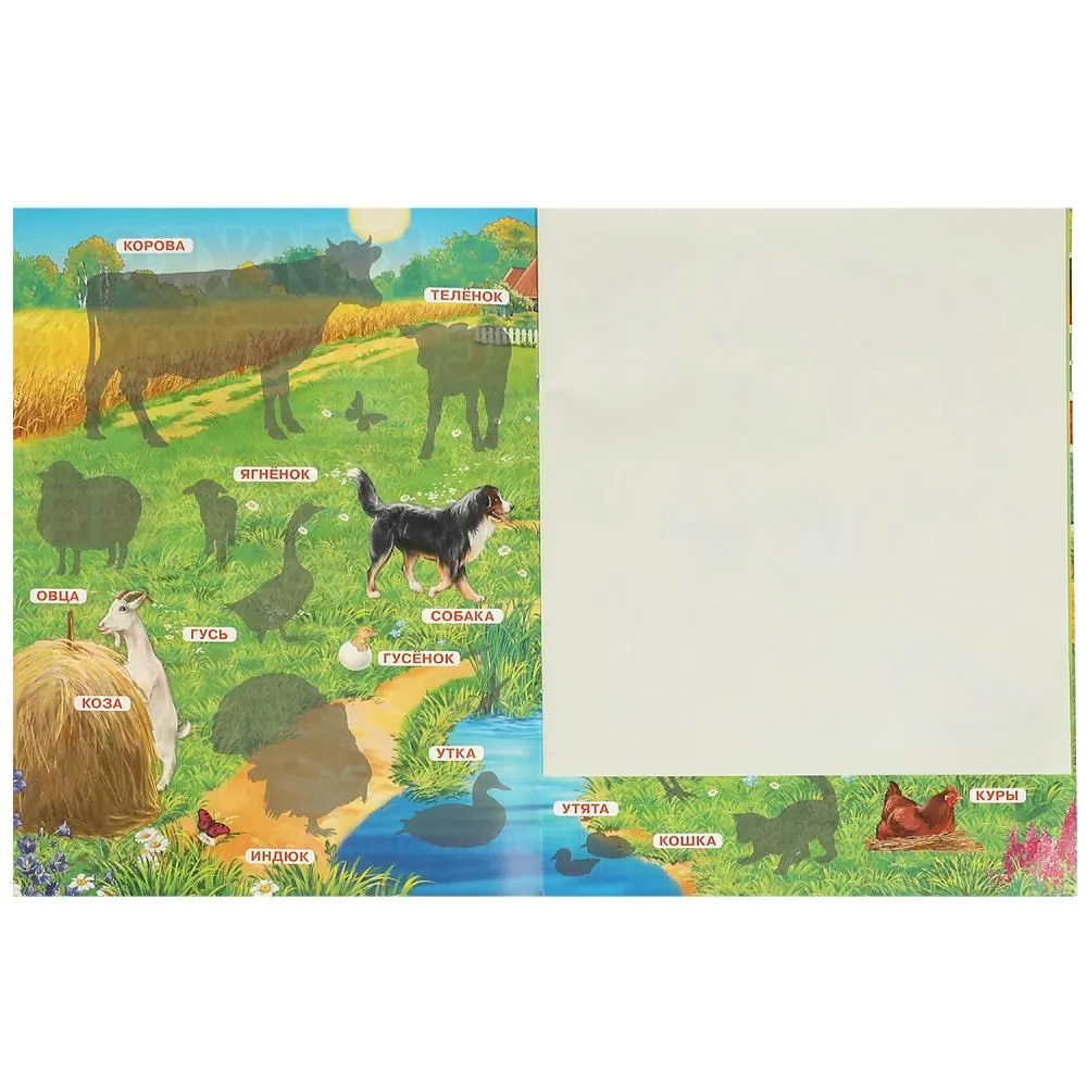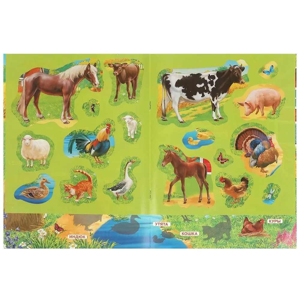 Книжка с наклейками станет не только увлекательным, но и полезным занятием для ребёнка. Рассматривая яркие иллюстрации, подбирая нужные наклейки и размещая их в правильных местах, малыш будет знакомиться с разными видами домашних животных и развивать внимание, зрительную память и мелкую моторику.