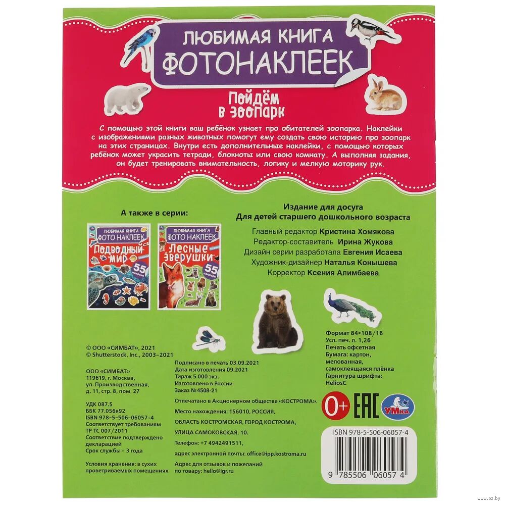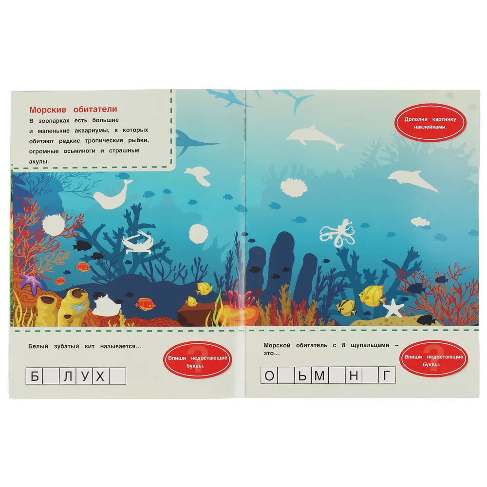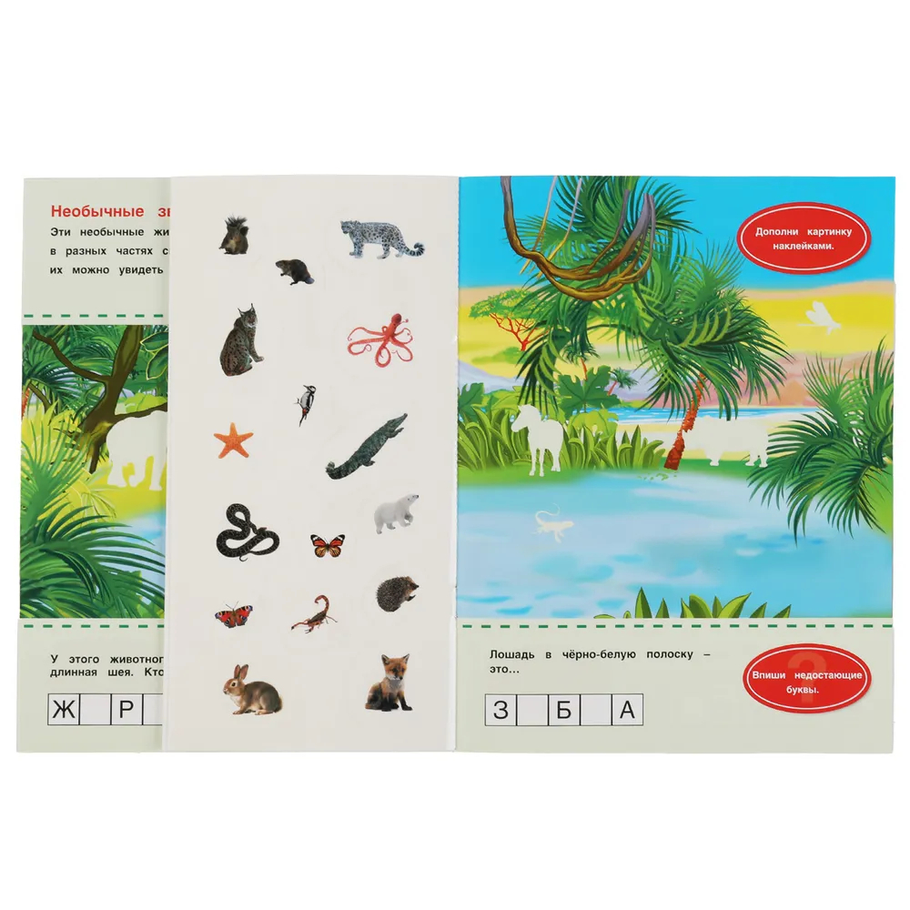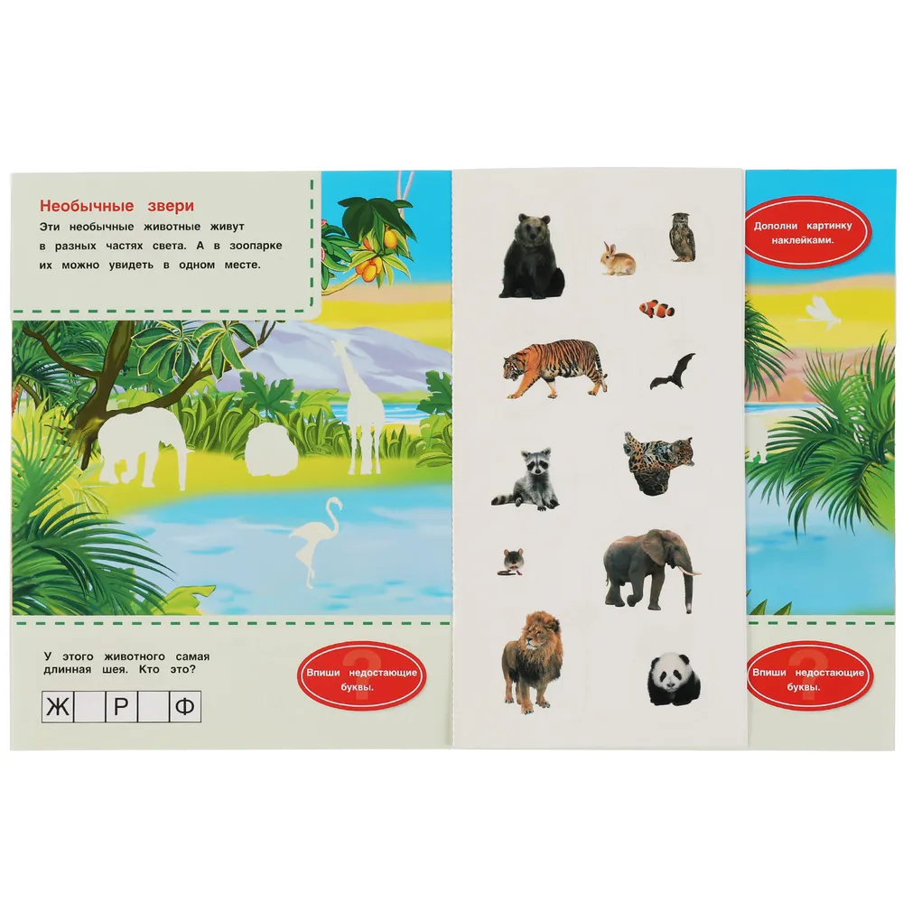 Малыш весело и с пользой проведёт время, а занимательные задания и яркие фотонаклейки познакомят его с разнообразными обитателями зоопарка.