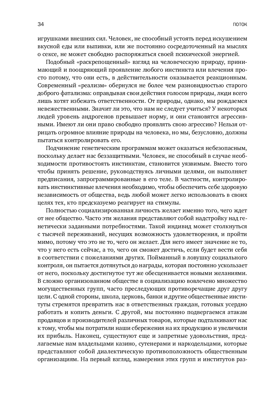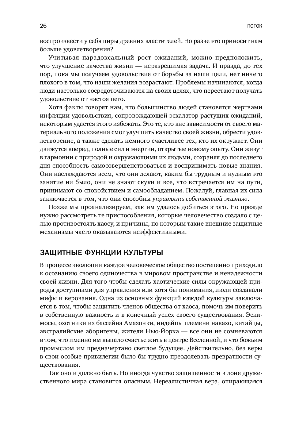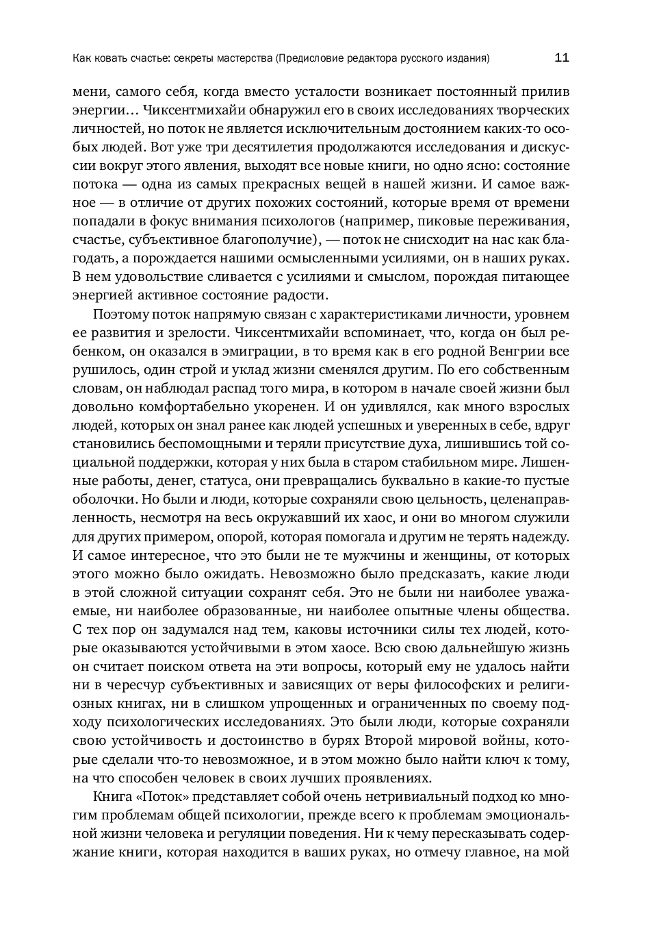 Автор выстраивает детальную, стройную и экспериментально подтвержденную теорию, в центре которой находится идея потока. Это состояние полного слияния со своим делом, поглощения им, когда не ощущаешь времени, самого себя, когда вместо усталости возникает постоянный прилив энергии.