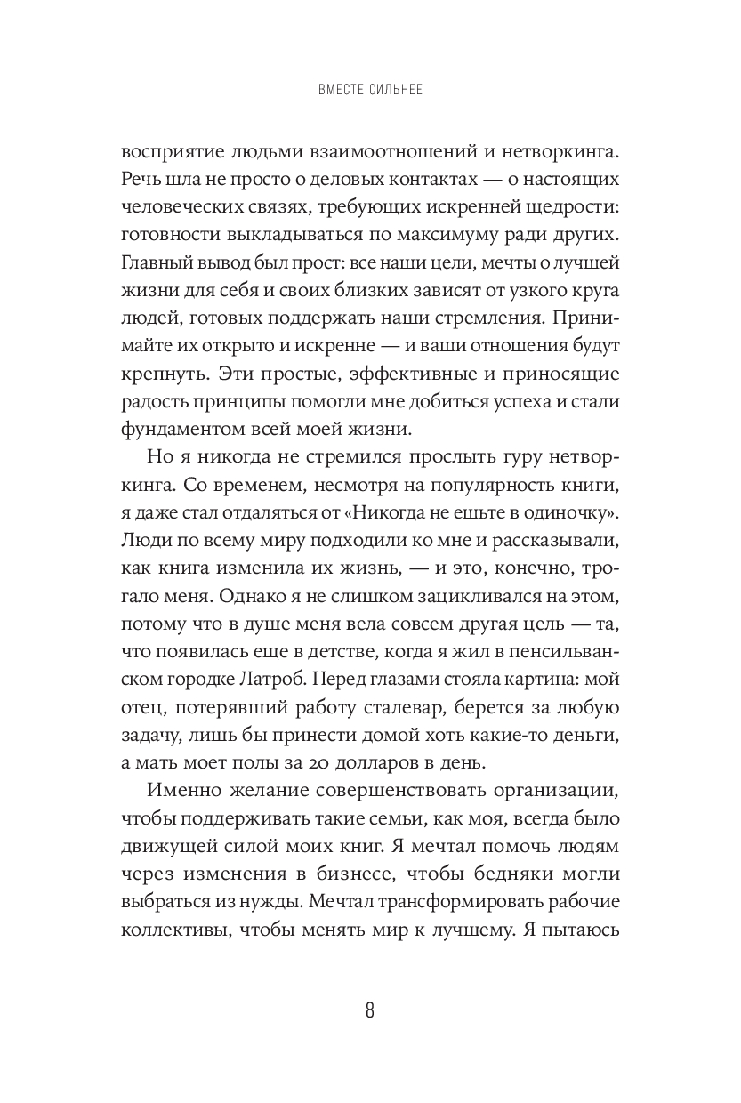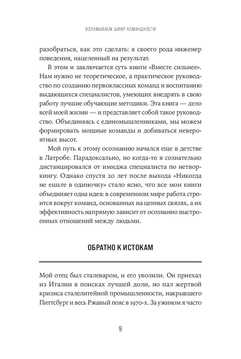 Модель управления, в которой руководитель контролирует все процессы и принимает решения в одиночку, давно устарела. Кейт Феррацци, автор супербестселлера "Никогда не ешьте в одиночку", опытный предприниматель и консультант, опираясь на 20‑летний опыт работы, пришел к выводу, что успех организации зависит не от усилий лидеров, а от слаженной работы команд. Успешные коллективы строятся на доверии, честности и открытости – там не замалчивают неудобную правду, готовы делиться идеями и сомнениями, даже если это рискованно.