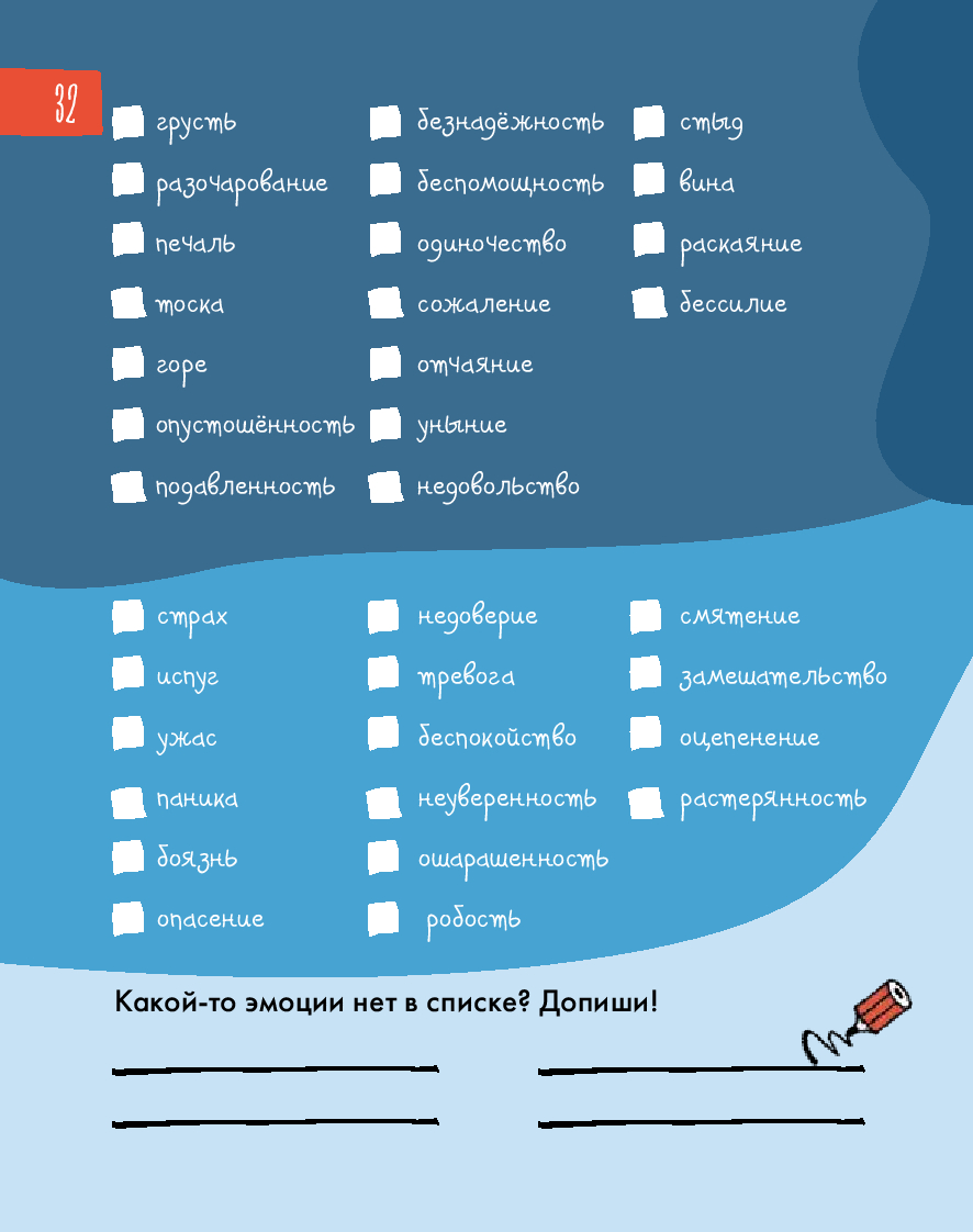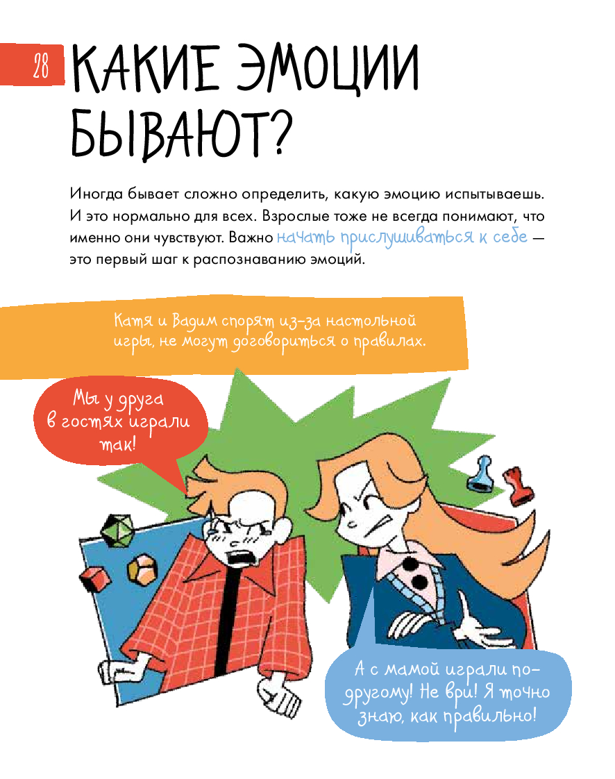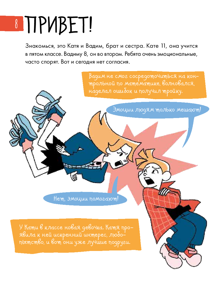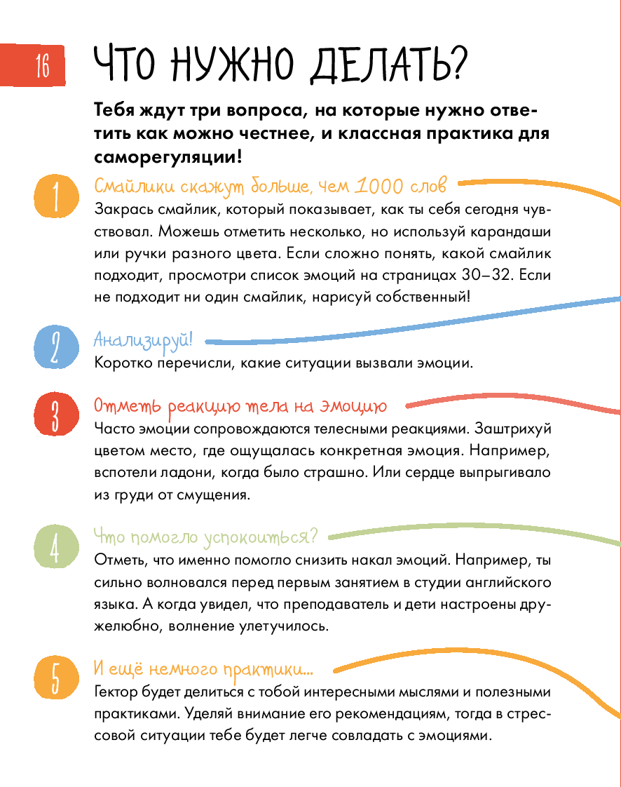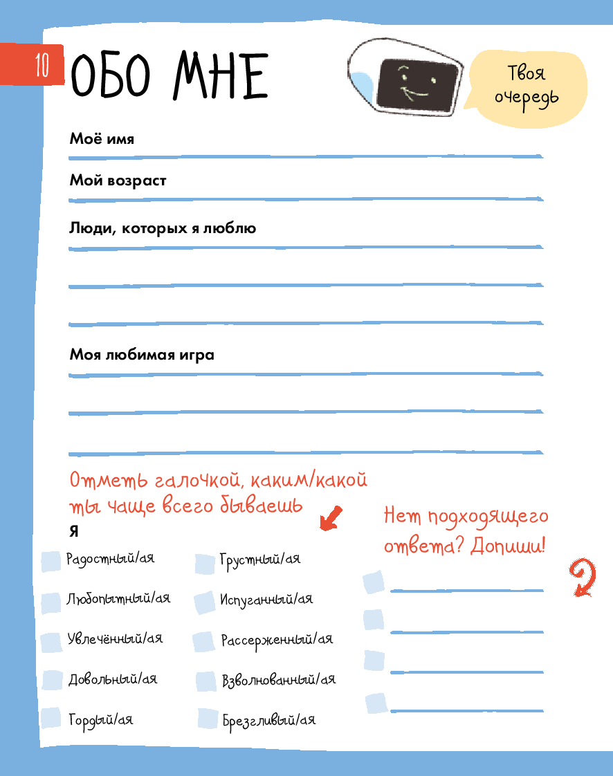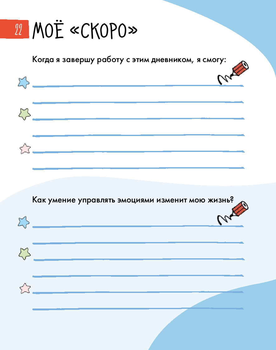 Радость, грусть, страх... – всё это эмоции. От них зависит не только то, как мы себя чувствуем, но и наши взаимоотношения с окружающим миром. Иногда бывает сложно определить, какую эмоцию испытываешь. И это нормально для всех. Этот уникальный интерактивный дневник настроения поможет детям 8–12 лет научиться распознавать, экологично проживать и выражать эмоции, уделять больше внимания своему эмоциональному и физическому состоянию, рефлексировать. Дневник учитывает особенности возрастной психологии детей, поэтому информация подаётся в игровом формате: заполнение дневниковых записей чередуется с увлекательными челленджами, творческими заданиями, интересными фактами и полезной информацией из области психологии. Все это обязательно поможет ребенку стать увереннее в себе и добиться успеха в жизни. Чтобы ребёнку было легче воспринимать материал, его будут сопровождать два героя: пятиклассница Катя и второклассник Вадим.