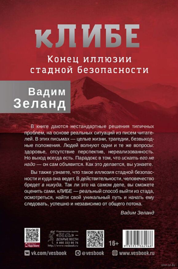 Вы также узнаете, что такое иллюзия стадной безопасности и куда она ведет. В действительности, человечество бредет в никуда. Так ли это на самом деле, вы сможете оценить сами. кЛИБЕ – реальный способ выйти из стада, осмотреться, найти свой уникальный путь и начать ему следовать, успешно и независимо от общего потока.