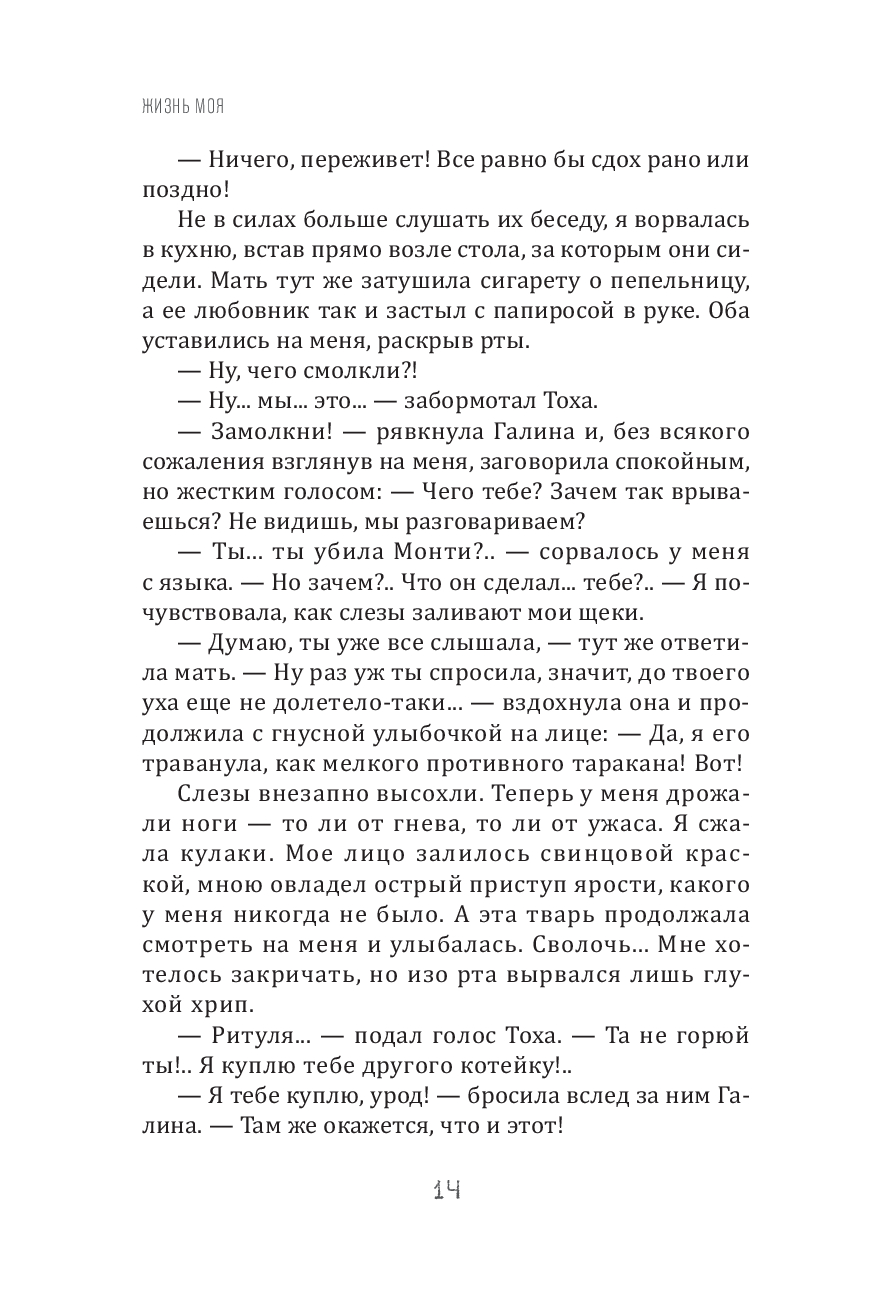 Маргарита отчаянно ищет выход из положения, в котором не может уйти и не может остаться, отчего еще глубже вязнет в трясине. В душе уже что-то сломалось, и она опускается на самое дно греха. Наконец, только смерть чудовища, жуткая, как и он сам, разлучает их. Казалось бы, на этом все мучения должны закончиться. Однако внезапно на смену исчадию в ее жизнь врывается, похоже, сам дьявол-отец. Неужели теперь ничего не исправить.