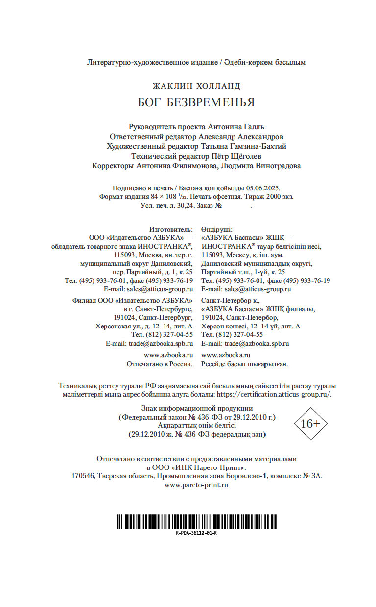 | Изготовитель | ООО "Издательство "Иностранка". 109017, РФ, г. Москва, ул. Пятницкая, 41 |