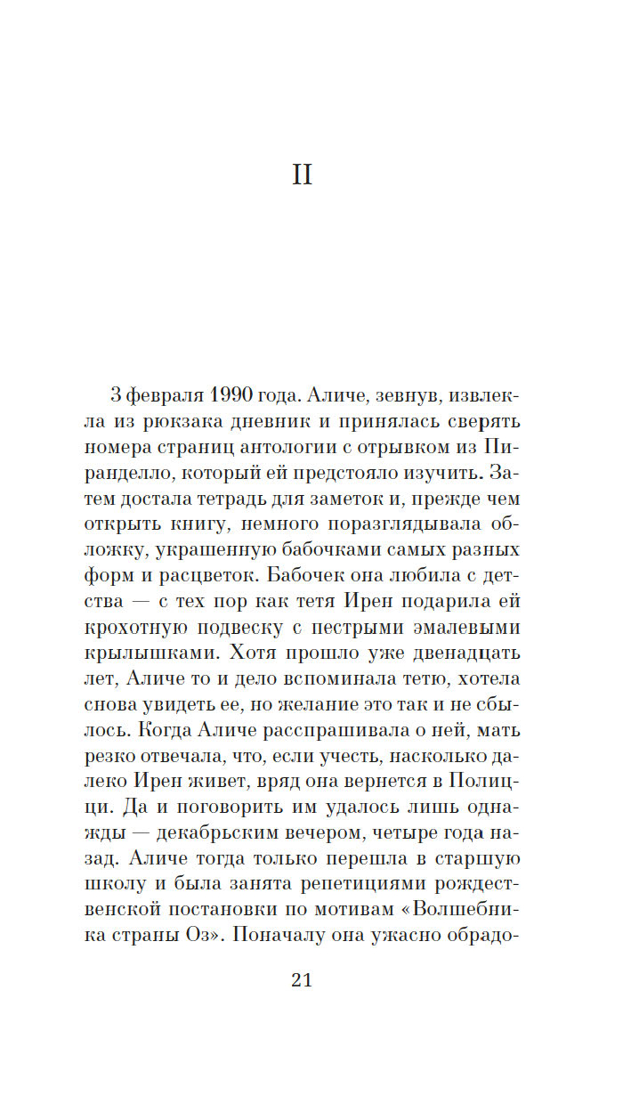 В августе 1978 года с шестилетней Аличе случилось чудо, хотя она поняла это не сразу. На пороге дома ее родителей появилась элегантная, немножко эксцентричная художница Ирен, давным-давно уехавшая с Сицилии в Рим. И один короткий разговор взрослой женщины с шестилетней девочкой изменил жизнь обеих.
