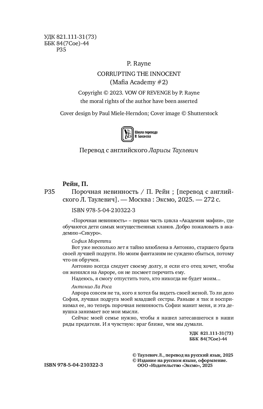"Порочная невинность" – вторая часть цикла "Академия мафии", где обучаются дети самых могущественных кланов. Добро пожаловать в академию "Сикуро".