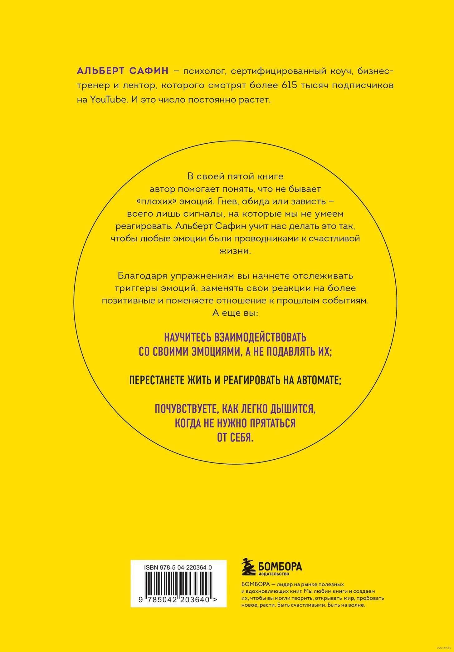 В своей пятой книге автор помогает понять, что не бывает "плохих" эмоций. Гнев, обида или зависть – всего лишь сигналы, на которые мы не умеем реагировать. Альберт Сафин учит нас делать это так, чтобы любые эмоции были проводниками к счастливой жизни.