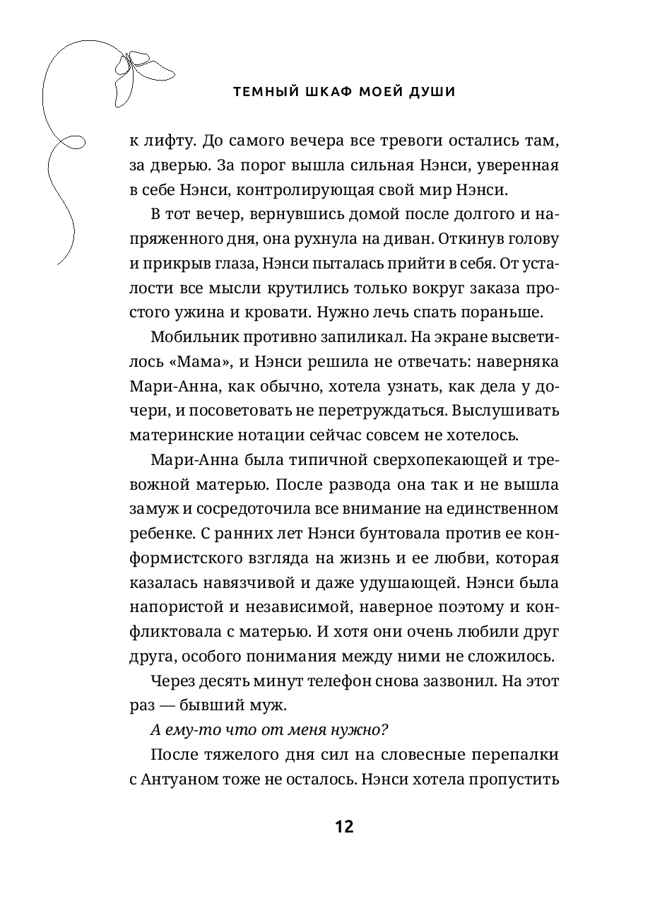 "Темный шкаф моей души" – это не просто роман, а эмоциональный разлом, через который проходит каждый, когда его привычный мир рушится. Пегги Эбринг, оратор и интуитивный лайф-коуч, превращает личную драму Нэнси в практическое руководство для тех, кто оказался на грани. Трудноизлечимый диагноз, разоблачение семейной лжи, измены, потеря доверия дочери – все это заставляет Нэнси разбирать собственную жизнь по кусочкам и заглянуть туда, куда страшно. Эта книга – о том, как выдержать удары судьбы, справиться с тревожностью и переосмыслить прошлое.