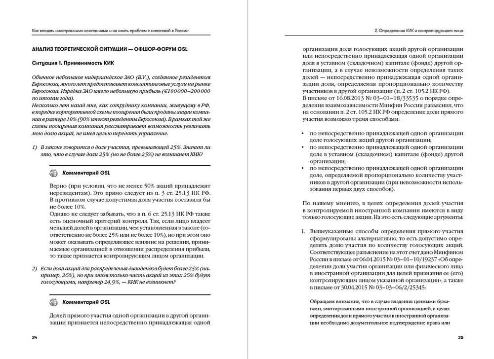 Специалисты GSL Law and Consulting рассматривают в Справочнике различные аспекты законодательства, практику его применения, возможные налоговые льготы, особенности применения иностранных структур (компаний, трастов, фондов), в том числе с использованием консультационных материалов, полученных в результате каждодневной консультационной деятельности на сайте компании в рамках правового и налогового форума.