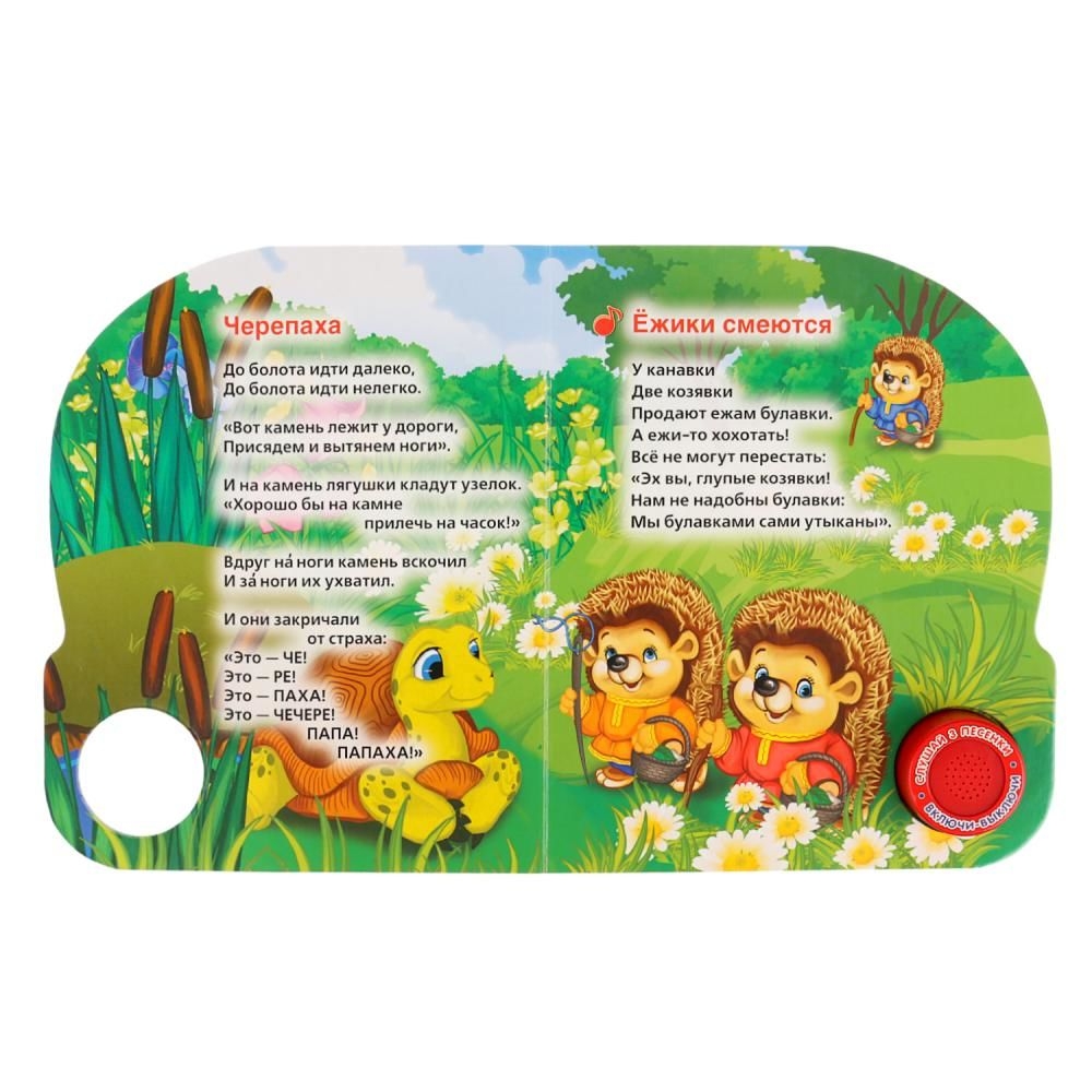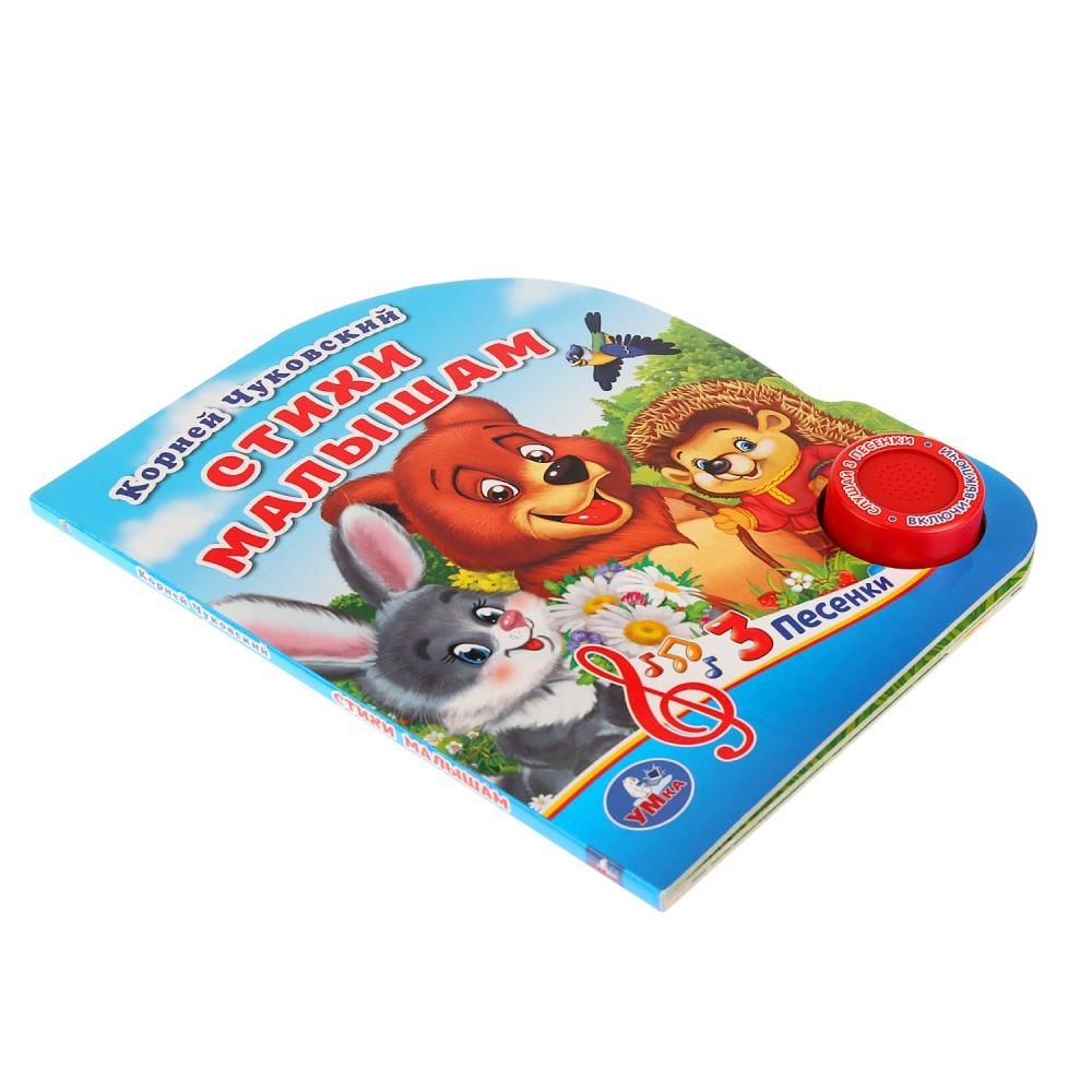 Музыкальная книжка "Стихи малышам" станет прекрасным подарком для ребёнка: 1 звуковая кнопка, 3 песенки: "Ежики смеются", "Барашек", "Курица", стихи К. Чуковского, красочные иллюстрации, фигурная вырубка.