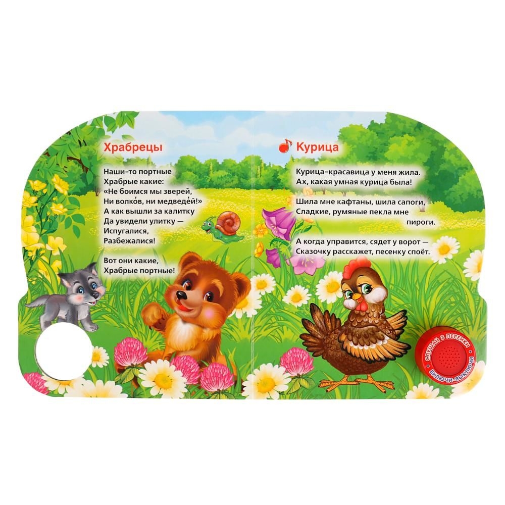 На каждой страничке красивые иллюстрации и стихи. Ребёнок будет с удовольствием рассматривать яркие страницы, слушать стихи и подпевать. Книжка сделана из плотного картона, поэтому можно не опасаться, что ребёнок порвёт странички.