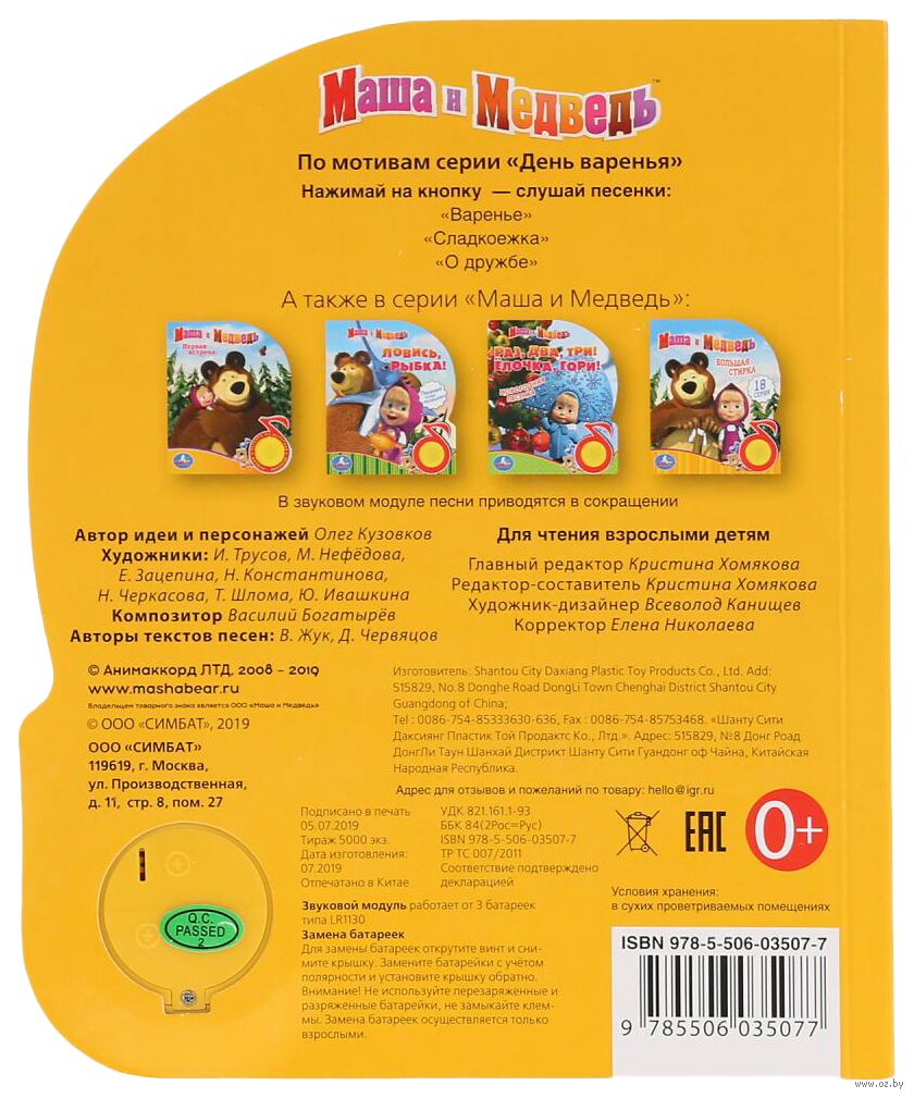 Одно нажатие на кнопку – песенка включится, второе нажатие – выключится. Благодаря компактному формату книжку удобно брать с собой.