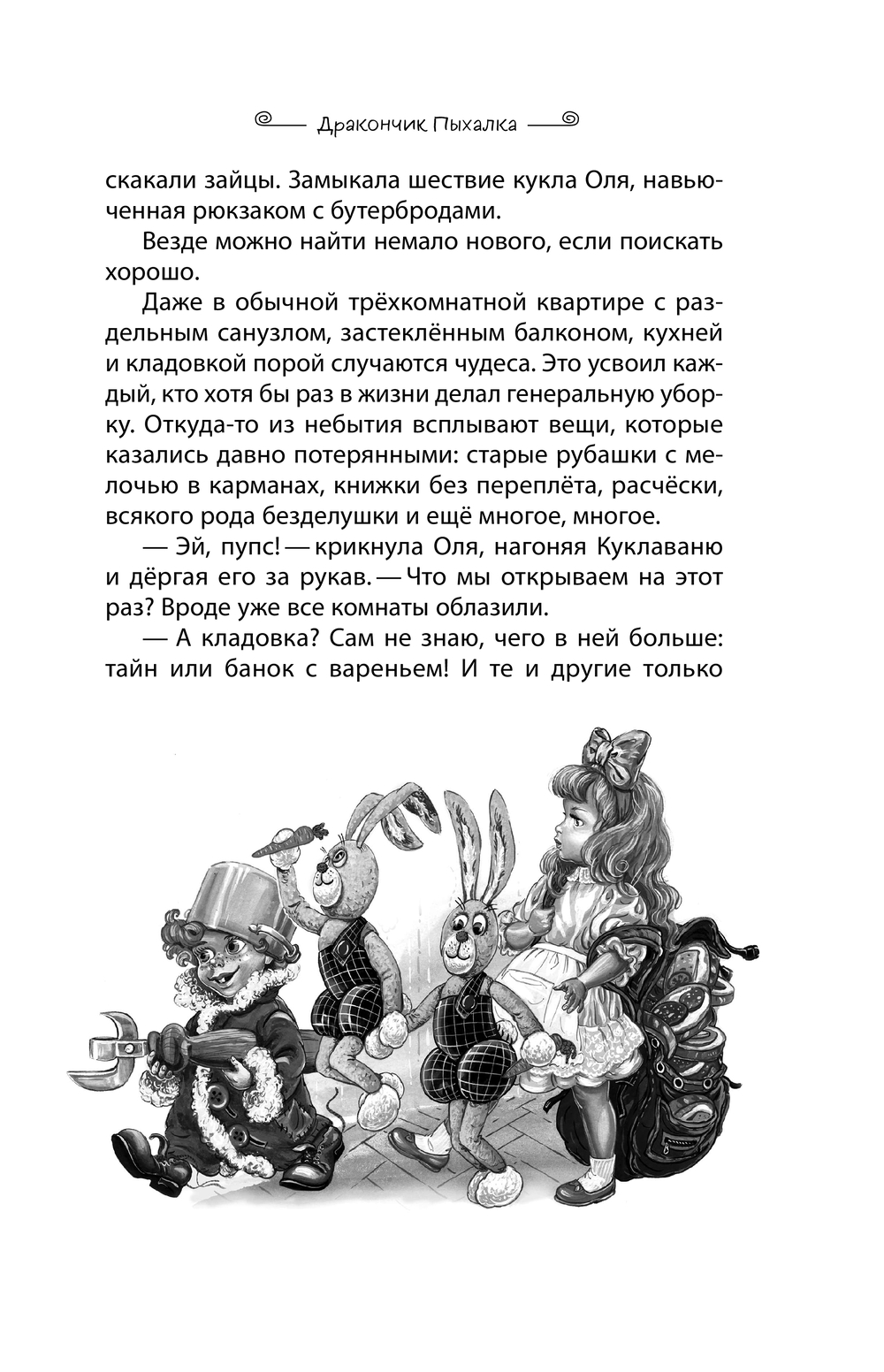 Однажды в квартире обычной московской девочки Маши из старинного бабушкиного сундука появился... настоящий дракончик. Много лет назад Пыхалка потерялся, залез в сундук и уснул, а разбудили его расшалившиеся Машины игрушки – нарядная кукла Оля, пупс Куклаваня, зайчата Синеус и Трувор и кошка Дуся.