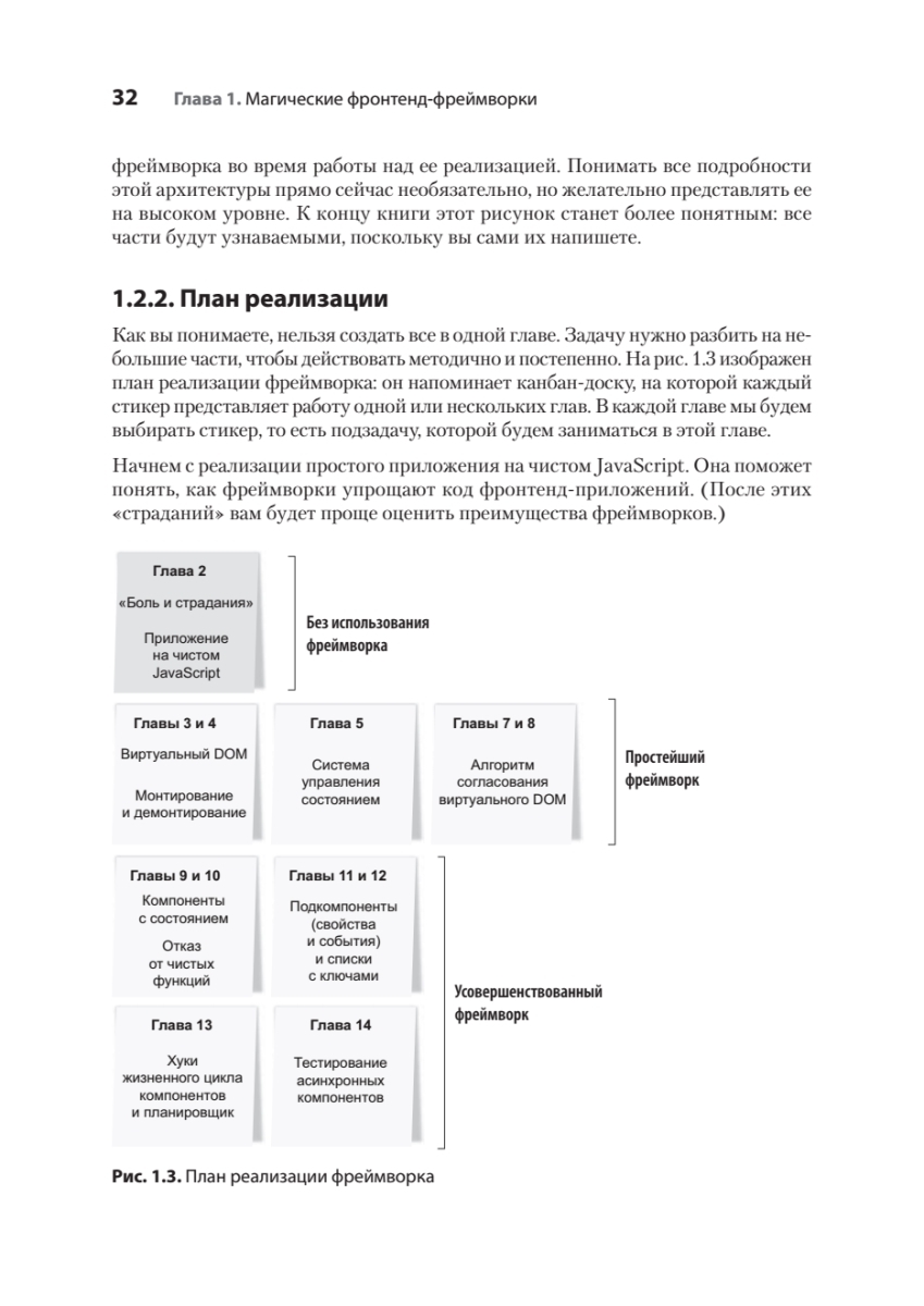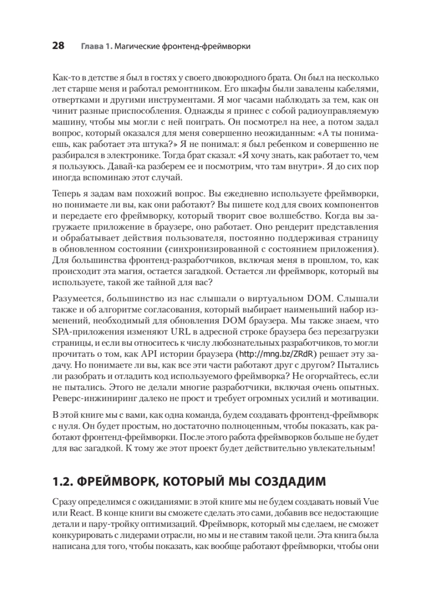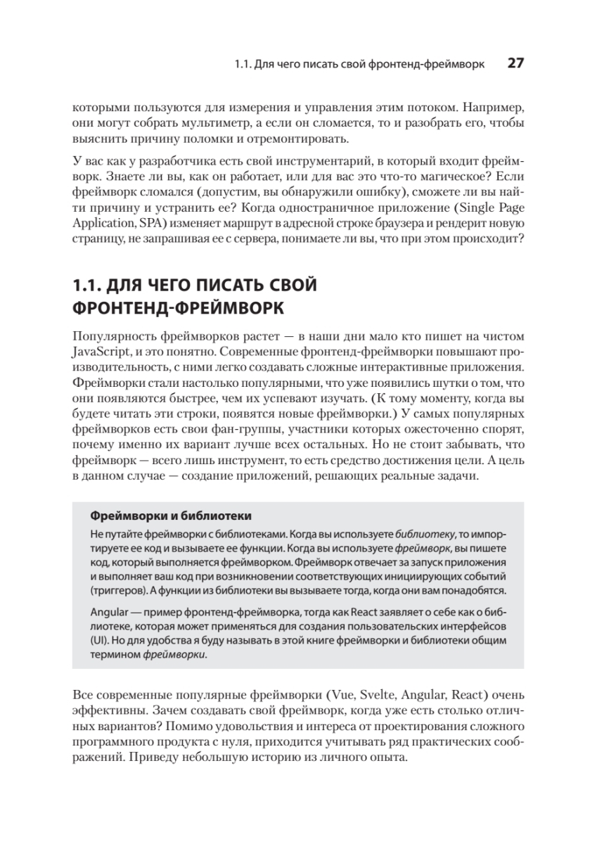 Пора разобраться, как работает современный фреймворк, научиться управлять состоянием компонентов и их жизненным циклом, работать с виртуальным DOM и использовать алгоритмы согласования для эффективного обновления HTML. Все ключевые концепции изложены простым языком и сопровождаются схемами. Многие концепции заимствованы из React, Svelte, Angular и других известных инструментов