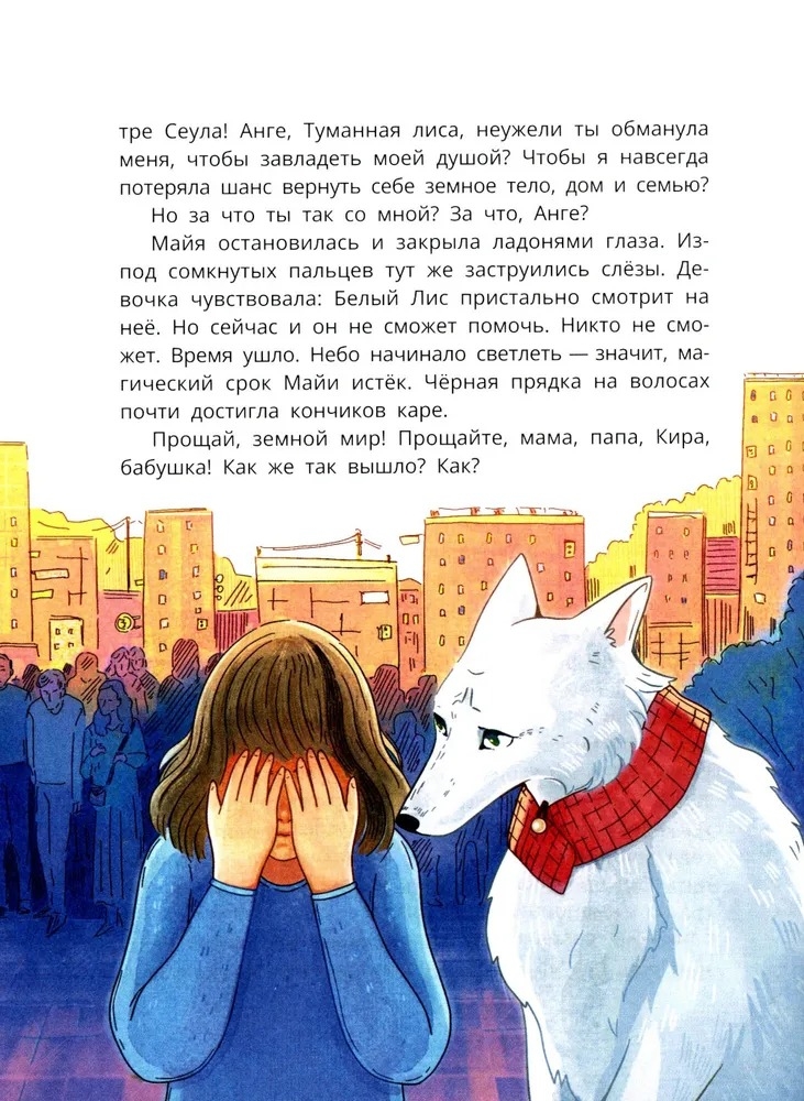 Майя встретится с белым лисом-оборотнем, гоблином-домовым, женщиной-медведицей, водяным львом, императорским драконом и другими персонажами корейской мифологии! Читатели вместе с героиней побывают в знаковых местах Сеула. Герои мифов и легенд, удивительный мир Южной Кореи и новые друзья – это прекрасно! Только вот если Майя не справится, она превратится в Белую птицу и никогда не вернётся в мир людей! А время на поиски кумихо уже на исходе.