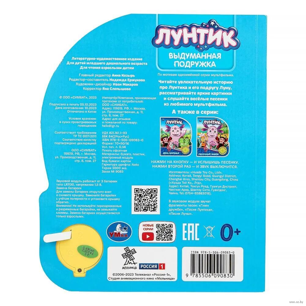 Ребёнок с удовольствием будет листать плотные страницы, рассматривать красочные картинки, читать вместе с родителями про приключения любимых персонажей, а также нажимать на кнопку и слушать весёлые песенки из м/ф. Малыш легко освоит включение звука: по нажатию на кнопку включится первая песенка, при втором нажатии выключится, в 3-ий раз – заиграет следующая и т.д. Благодаря компактному формату книгу удобно взять с собой в дорогу.