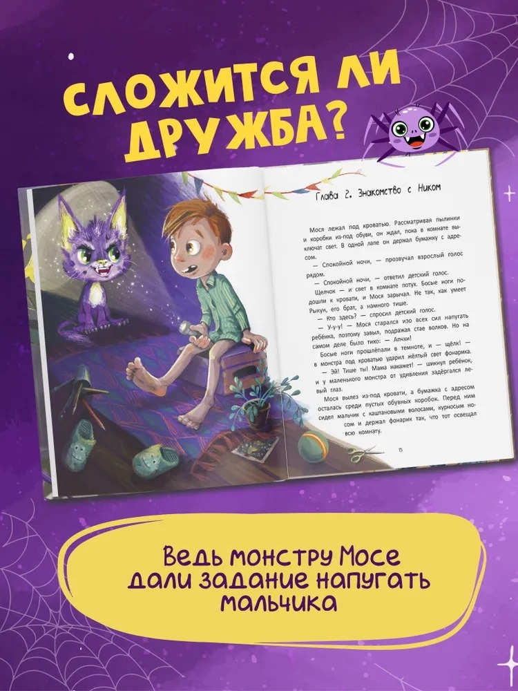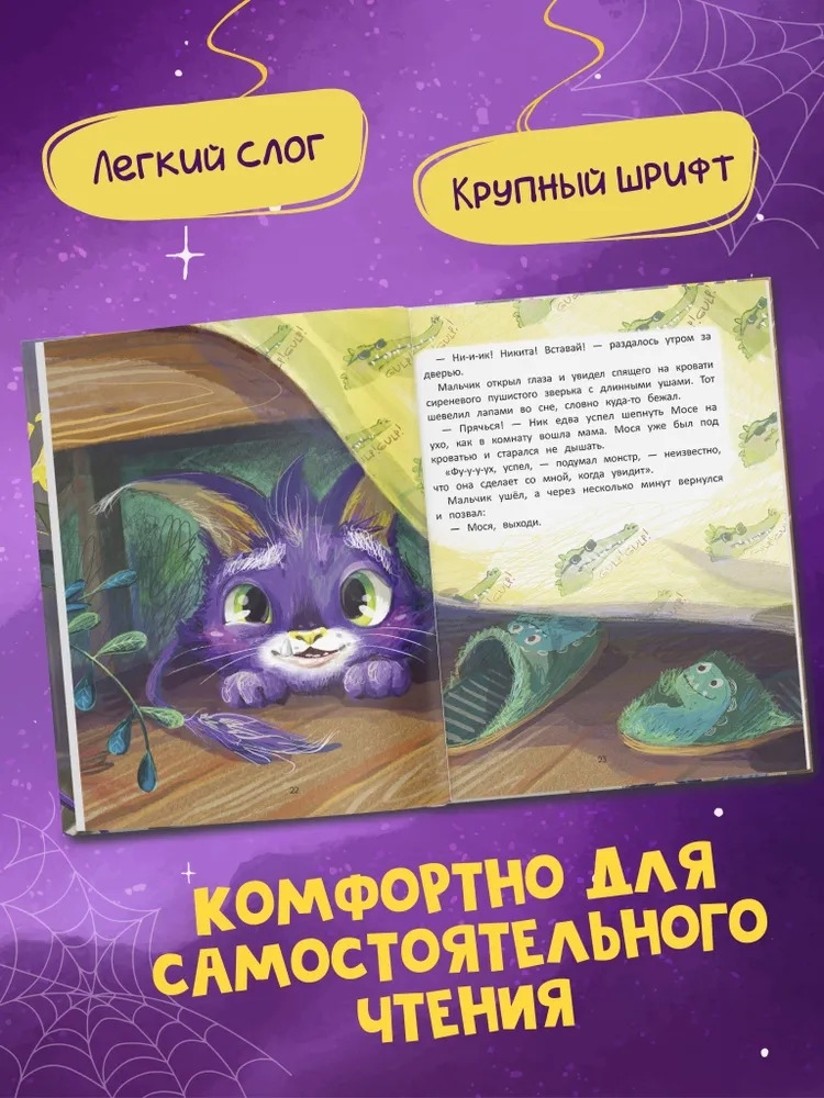 He все дети боятся подкроватных монстров! Вот и Никита, встретив такого, совсем не испугался. Сиреневый забавный монстр, похожий на кошку, – да кто не захочет с таким подружиться? Но получится ли? Ведь монстру Мосе дали задание напугать мальчика.