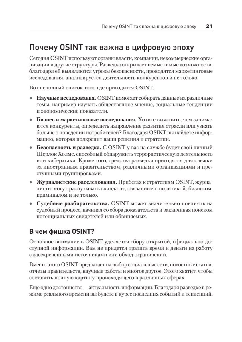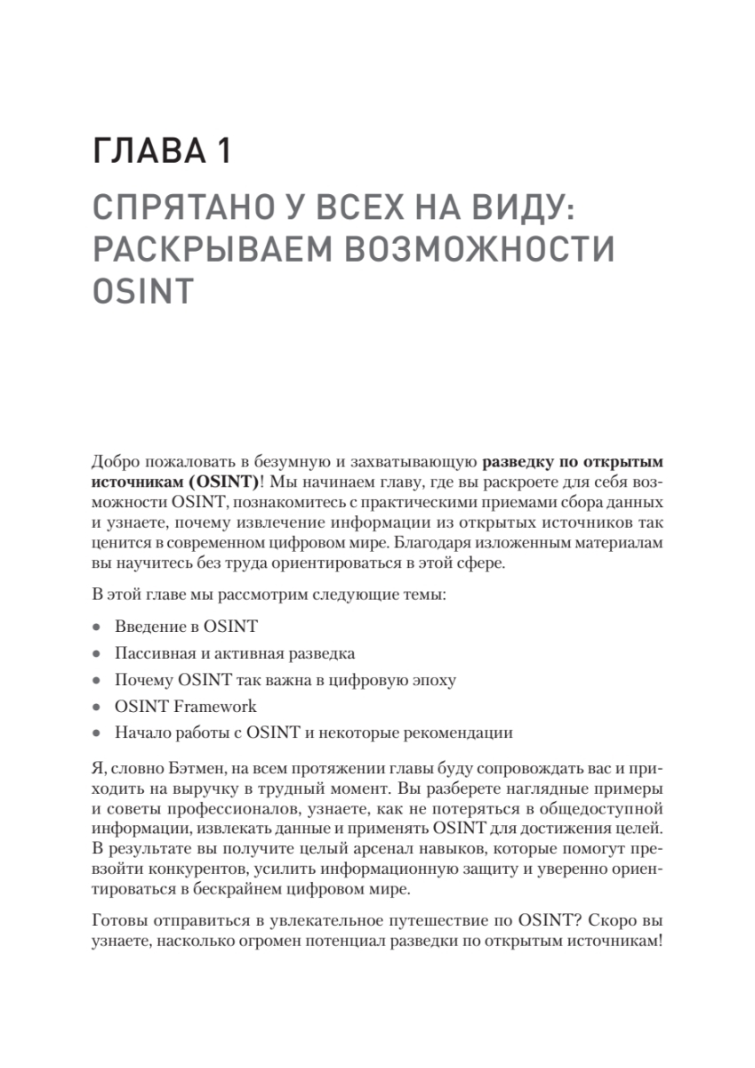 Погрузитесь в мир цифровых расследований с книгой, которая станет вашим ключом к пониманию современных угроз и методов защиты от них. Шаг за шагом вы пройдете путь от основ кибербезопасности до тонкостей разведки по открытым источникам (OSINT), ведь только так можно освоить навыки, превращающие информационный шум в ценные инсайты.