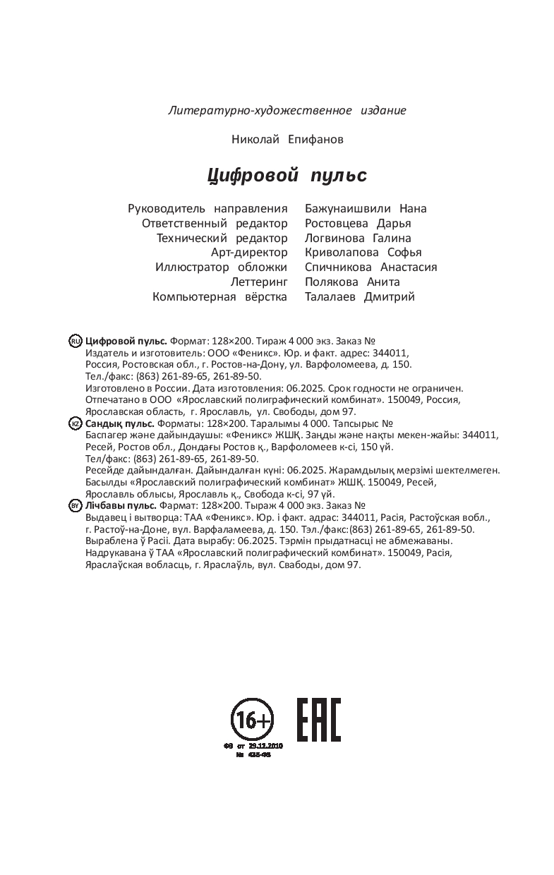 | Изготовитель | ЗАО "Издательство "Феникс". 190000, РФ, г. Санкт-Петербург, пер. Антоненко, 2 |